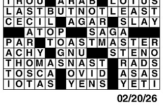 Crossword, Sudoku answers: Feb. 20-26