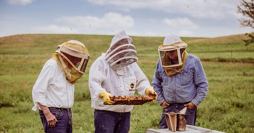 Beekeepers place the boxes filled with bees and honey supers in shelter belts, along creeks and in pastures. Enticed by blooms from lilac bushes, alfalfa, plum trees and dandelions, the tiny livestock head out in the cool mornings to gather nectar to make honey and transfer pollen.