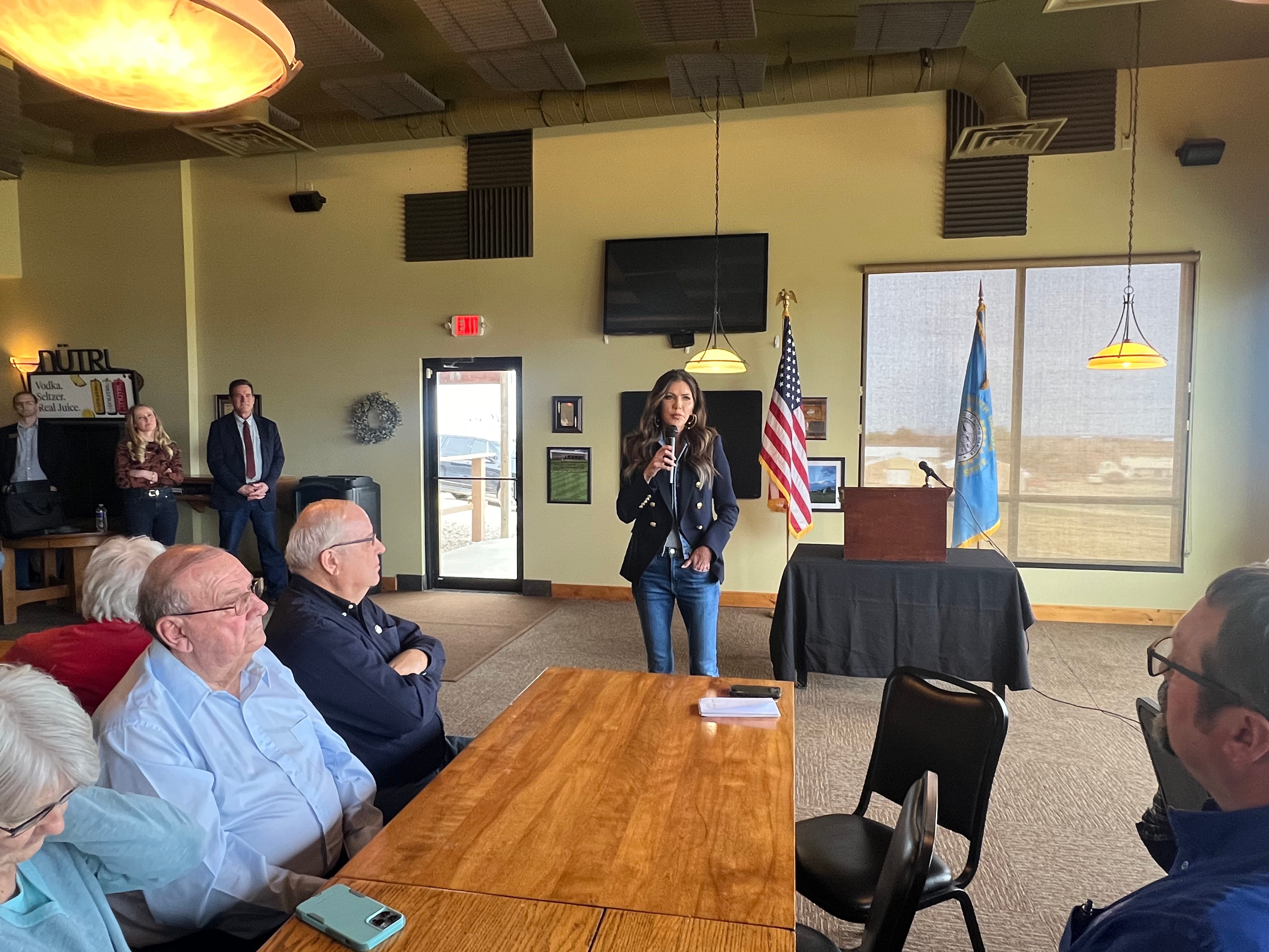 Gov. Kristi Noem takes questions at two town halls in eastern South Dakota