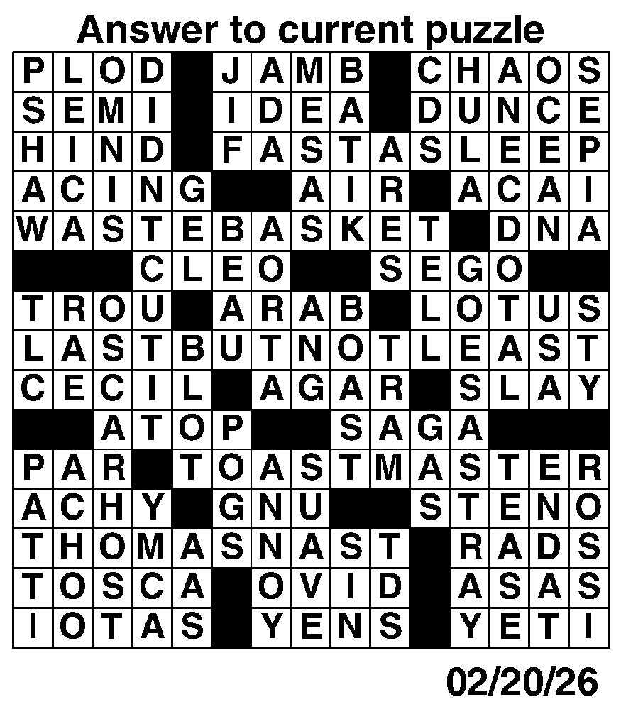 The Lounge Crossword, Sudoku answers: Feb. 20-26Free, for your entertainmentThe Dakota ScoutFeb 22, 2026ShareSubscribePrevious