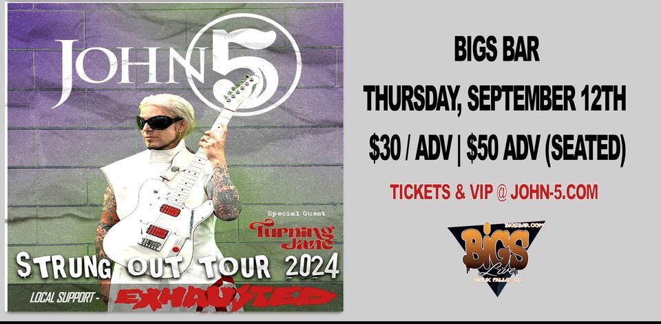 Get ready to rock out with JOHN 5 at Bigs Bar Live. It’s going to be an epic night of mind-blowing guitar solos and high-energy rock music.