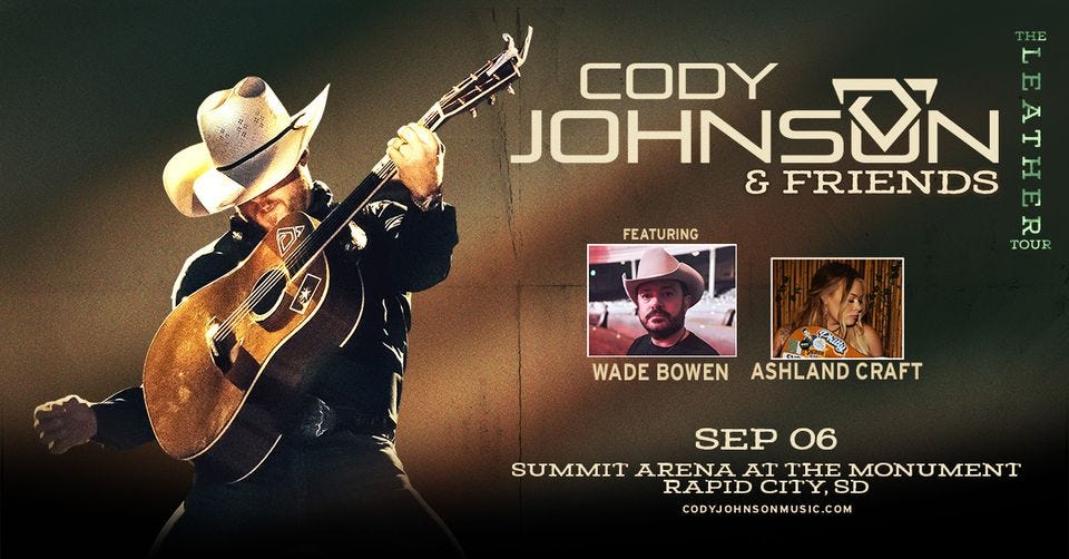 Platinum recording artist and ACM Entertainer of the Year nominee Cody Johnson is bringing The Leather Tour to Rapid City, S.D., on Friday, September 6. Tearing up the stage in Summit Arena at The Monument, he will be joined by artists Wade Bowen and Ashland Craft.
