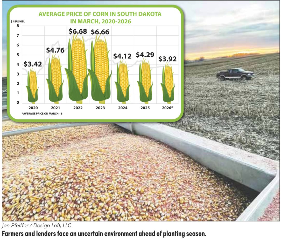 That takes into account South Dakota’s first billion-bushel corn harvest in 2025 and cash corn prices that were struggling to reach $4 a bushel as of mid-March.