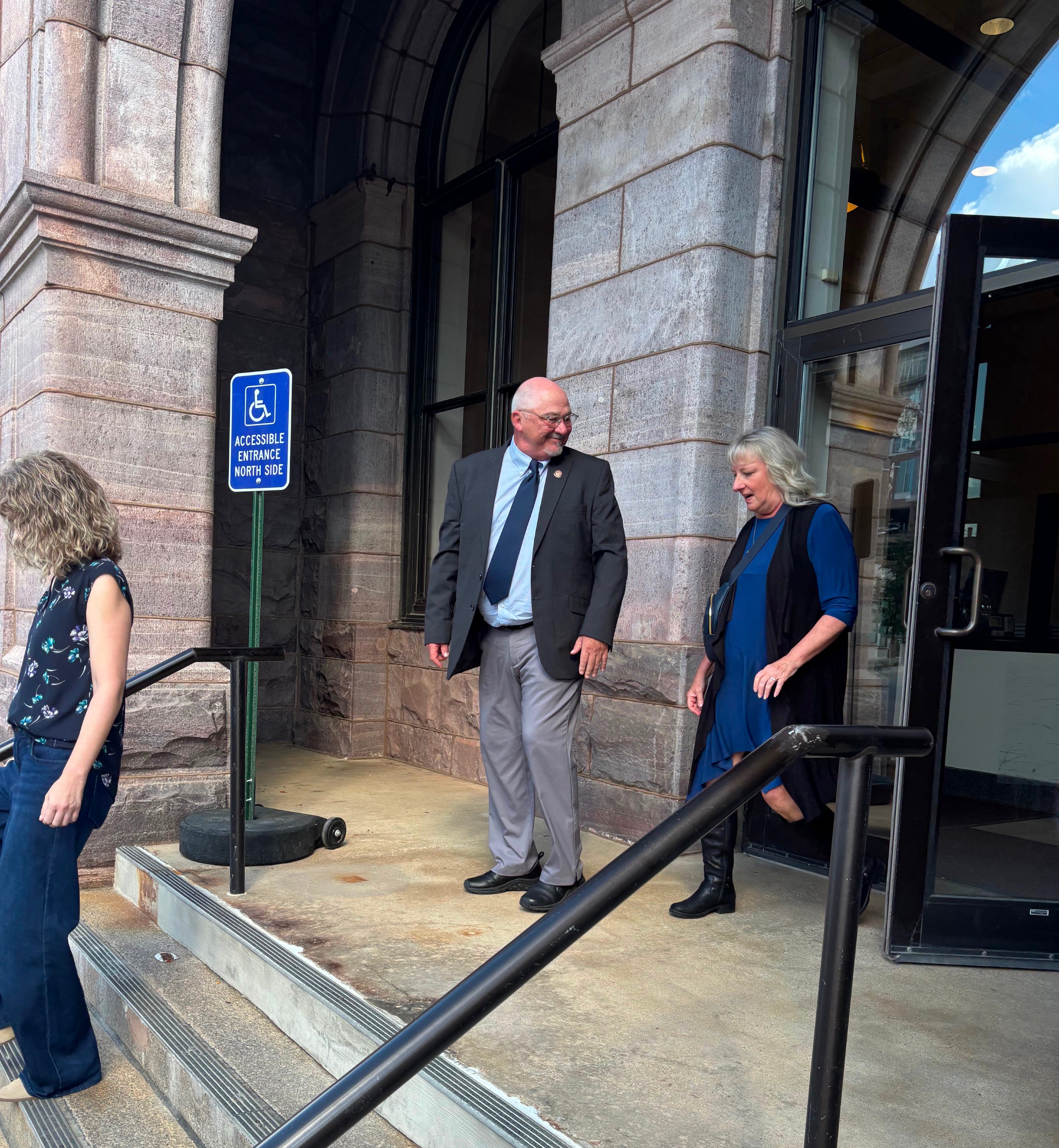 Judge Karen Schreier heard from lawyers representing USD art professor Phillip Michael Hook and the state of South Dakota, one day after Hook filed a lawsuit to stop the state from moving to terminate him. About 40 of Hook’s supporters filled the courtroom.