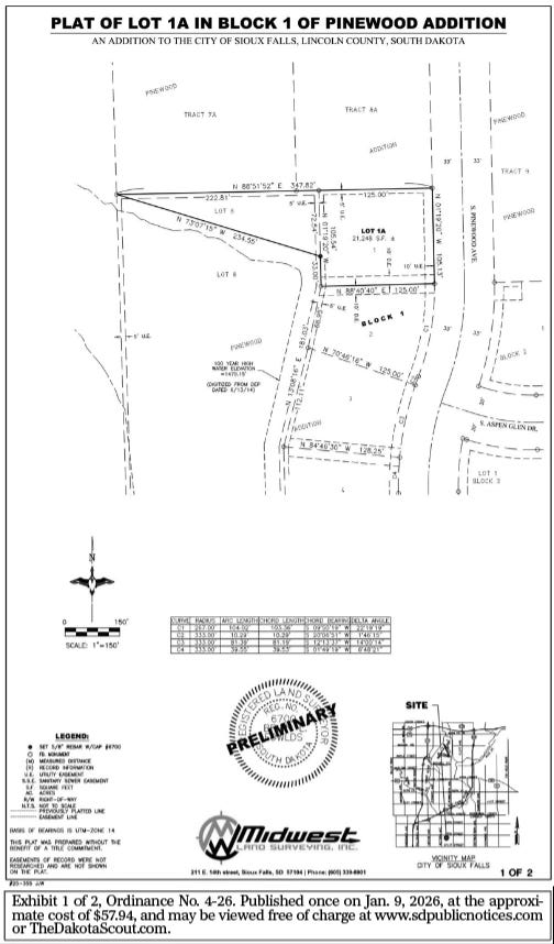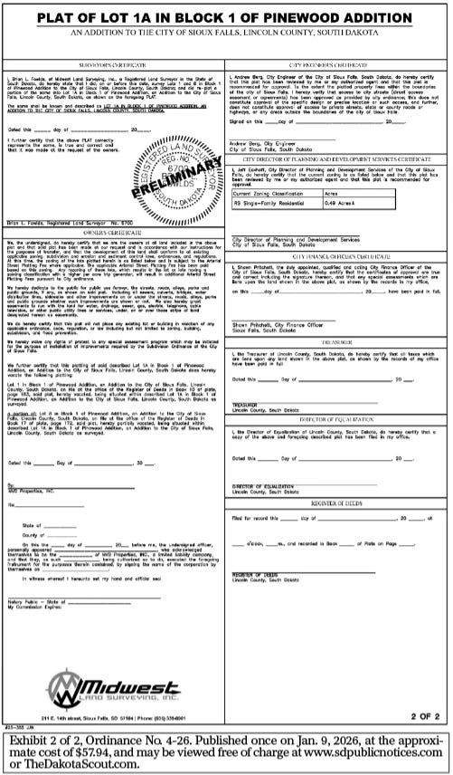 Published Jan. 9, Jan. 16 & Jan. 23, 2026 at the approximate cost of $53.62, and may be viewed free of charge at www.sdpublicnotices.com or TheDakotaScout.com.