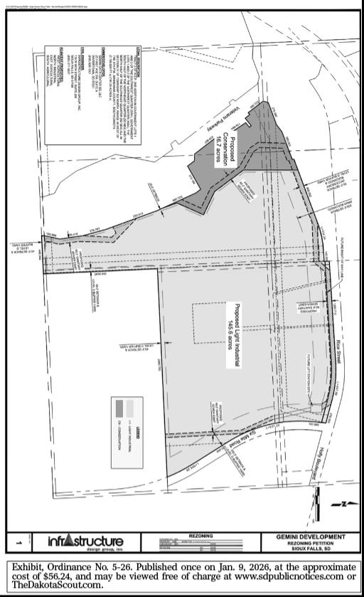 Notice is hereby given that at the regular Sioux Falls City Council meeting to be held at 6 p.m. on January 20, 2026, at the Carnegie Town Hall, 235 W. 10th St., there will be a public hearing on the following amendment(s) to the Zoning Ordinance and other items in accordance with the Zoning Ordinance of the City of Sioux Falls: