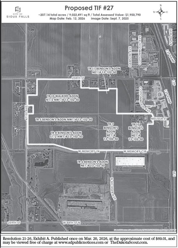 Published Feb. 27, Mar. 6, Mar. 13 & Mar. 20, 2026 at the approximate cost of $54.38, and may be viewed free of charge at www.sdpublicnotices.com or TheDakotaScout.com.