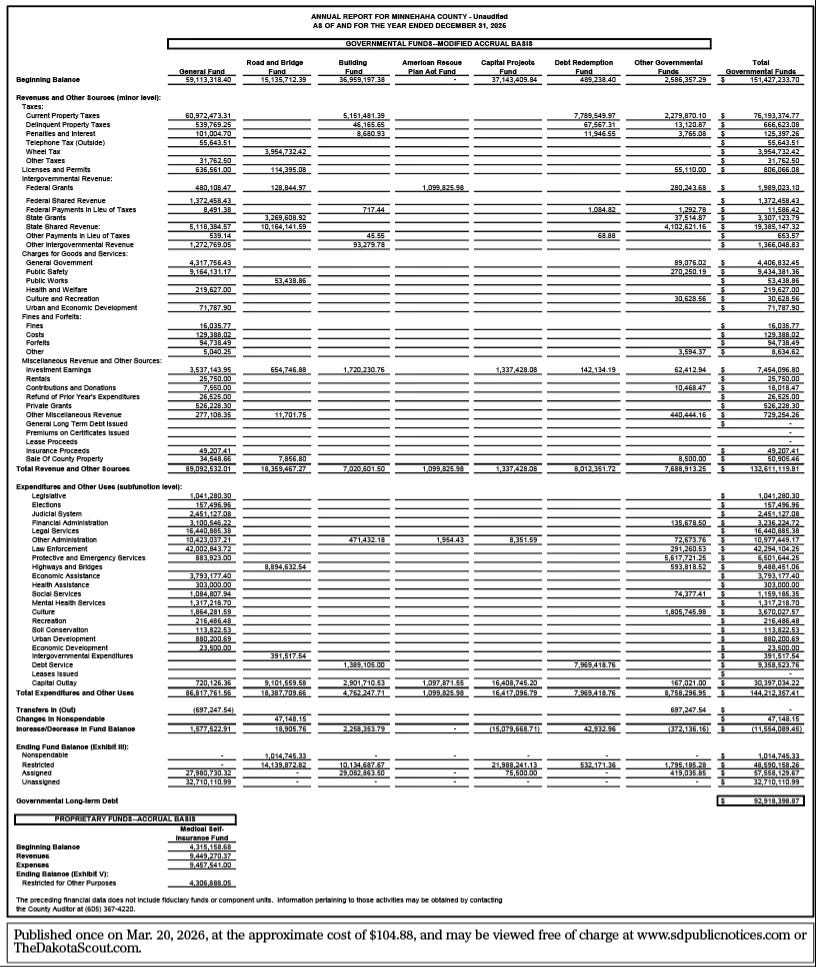 Published twice on Mar. 20 & Mar. 27, 2026, at the approximate cost of $41.77, and may be viewed free of charge at www.sdpublicnotices.com or TheDakotaScout.com.