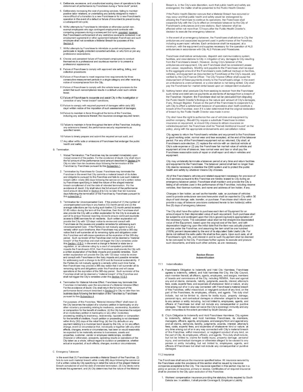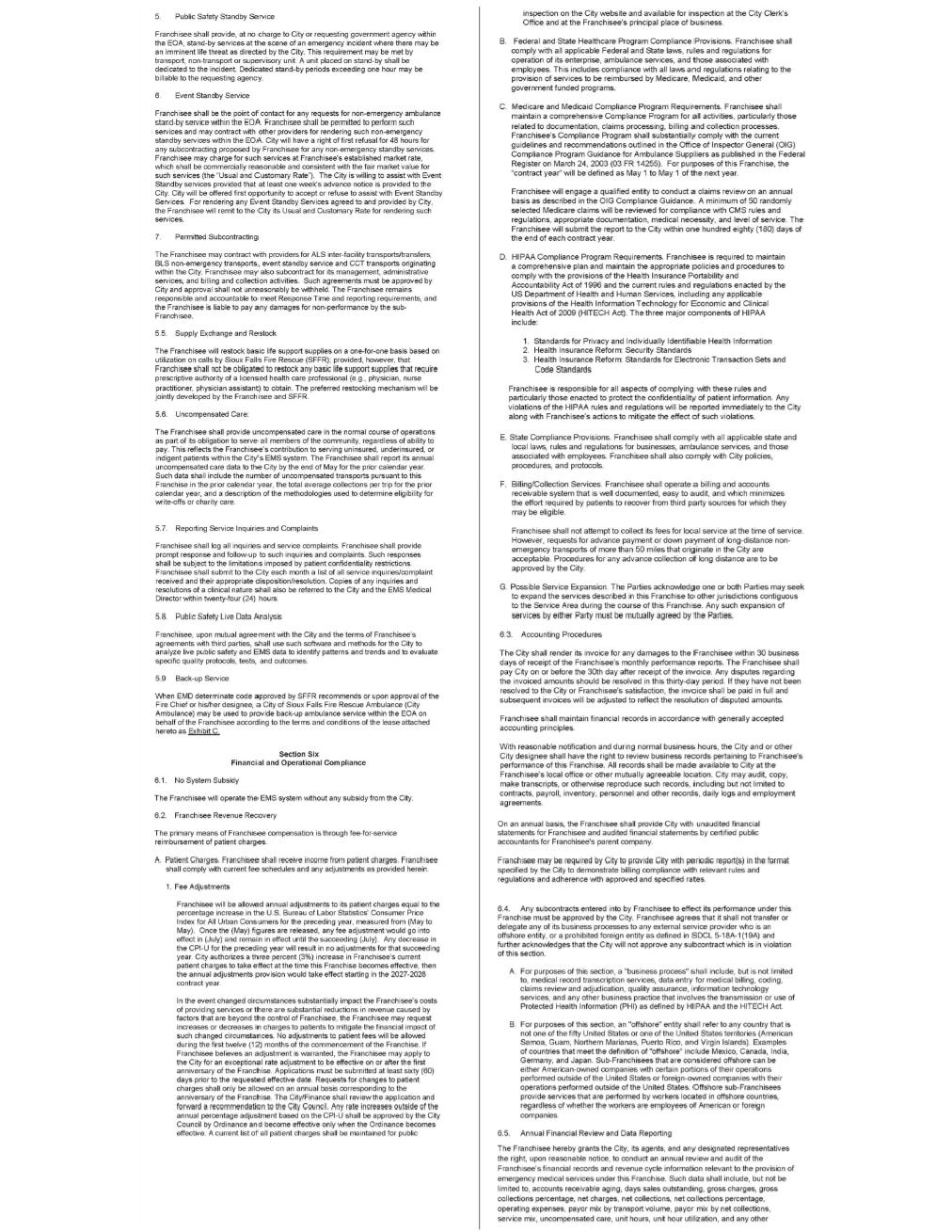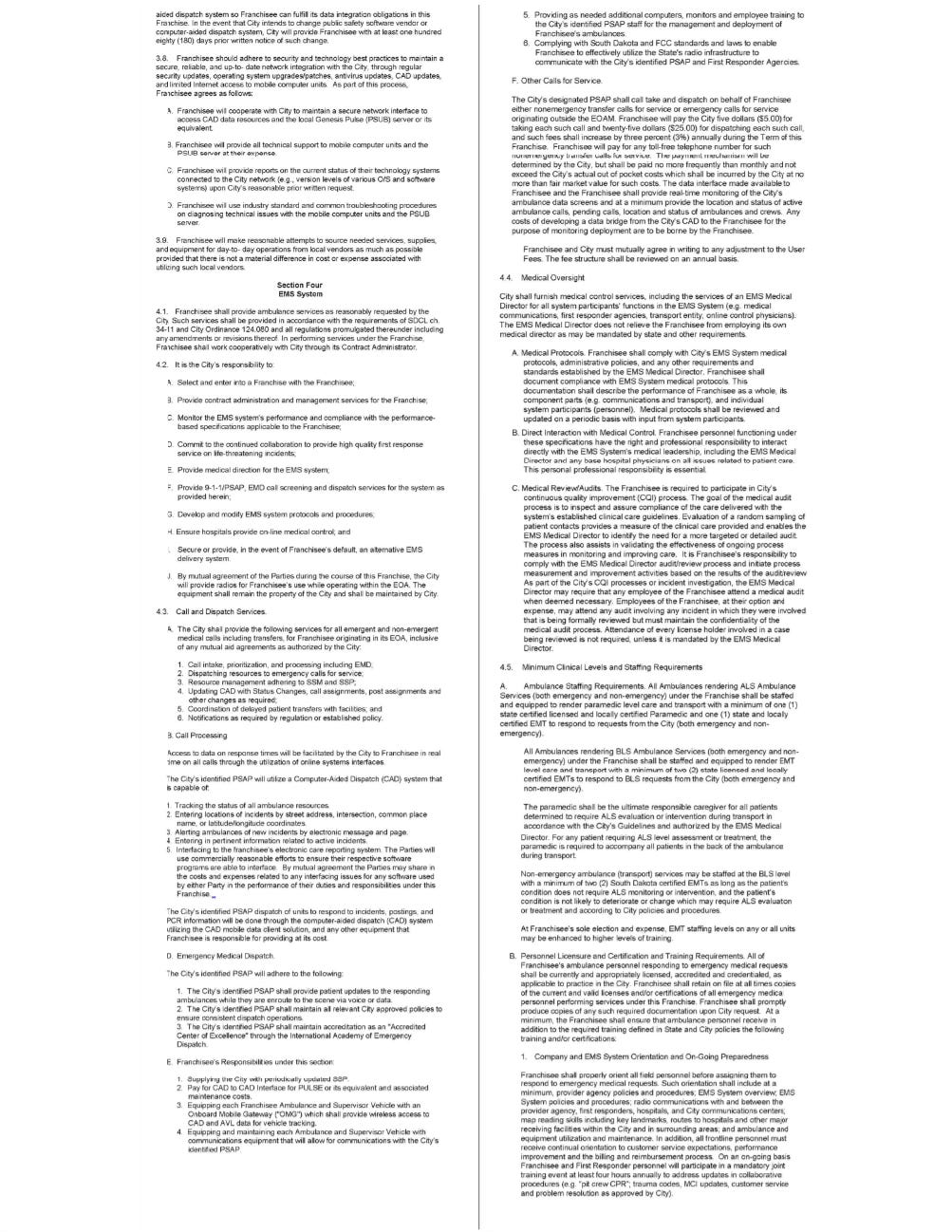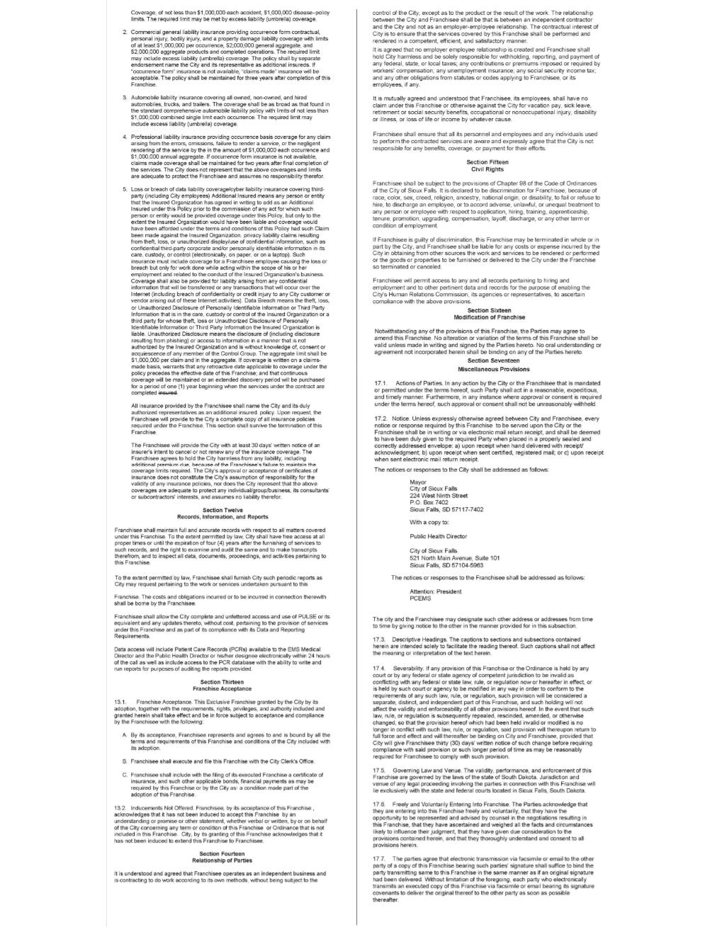 WHEREAS, that the City of Sioux Falls, South Dakota (“City”) has the authority to grant an exclusive franchise to provide surface ambulance service within the city pursuant to SDCL 34-11-1, City Charter Section 2.12(4), and Sections 124.080 and 124.081 of the Revised Code of Ordinances of Sioux Falls, South Dakota;