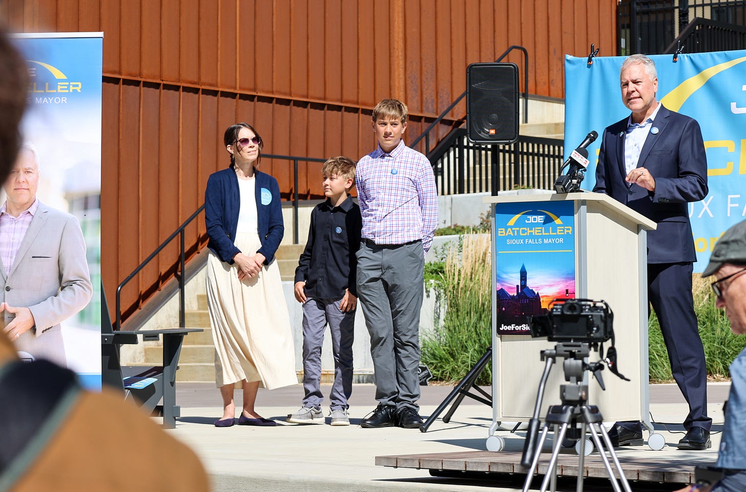 Former Downtown Sioux Falls, Inc., President Joe Batcheller made it official Tuesday, announcing his candidacy for mayor with a pledge to bring “an independent voice” to City Hall if victorious in next June’s municipal election. And with a decades-long career in urban planning, he told a crowd of supporters and onlookers at a campaign kickoff event in downtown Sioux Falls that he is the person to lead South Dakota’s largest city.