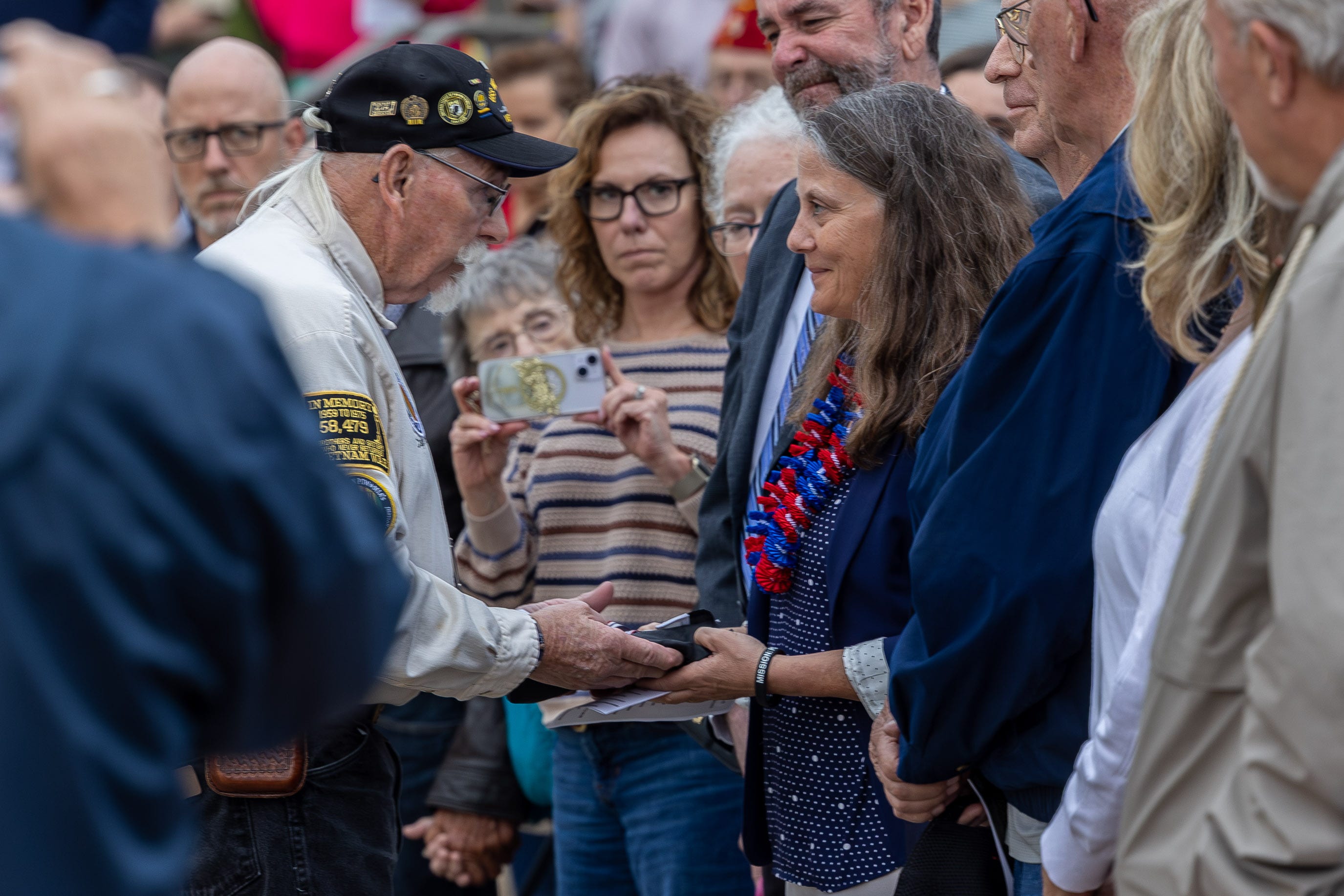 Silence settled over a crowd at Veterans Memorial Park in Sioux Falls as a folded black flag became a possession of Col. Walter A. Renelt’s family.