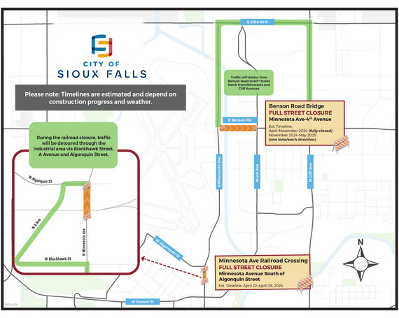 “Travel on North Minnesota Avenue and around the airport will be impacted,” City Engineer Andy Berg said. "We appreciate everyone’s patience and understanding as we make these important and necessary updates to our transportation and utility network."