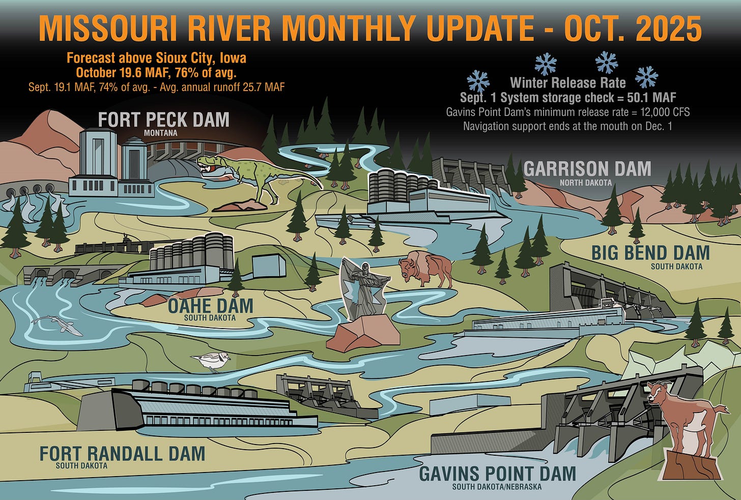 “The above-average runoff combined with the lower releases from Gavins Point slightly improves the System storage outlook for the beginning of the 2026 runoff season,” Remus added.