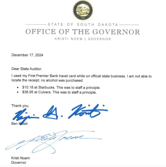 That’s according to a review of the former governor’s state-issued credit card records, obtained by The Dakota Scout through a settlement between the newspaper and the South Dakota Auditor’s Office agreed to after Noem became U.S. Homeland Security secretary in late January.