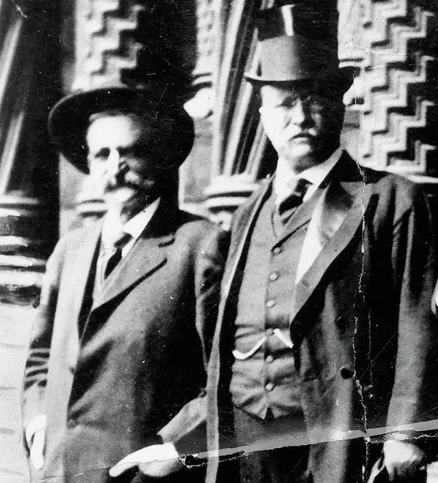Then–vice presidential candidate Teddy Roosevelt and Deadwood businessman and Deadwood father Seth Bullock — who became the town’s first sheriff — toured the region alongside one another in a campaign to bring national attention to Black Hills mining.