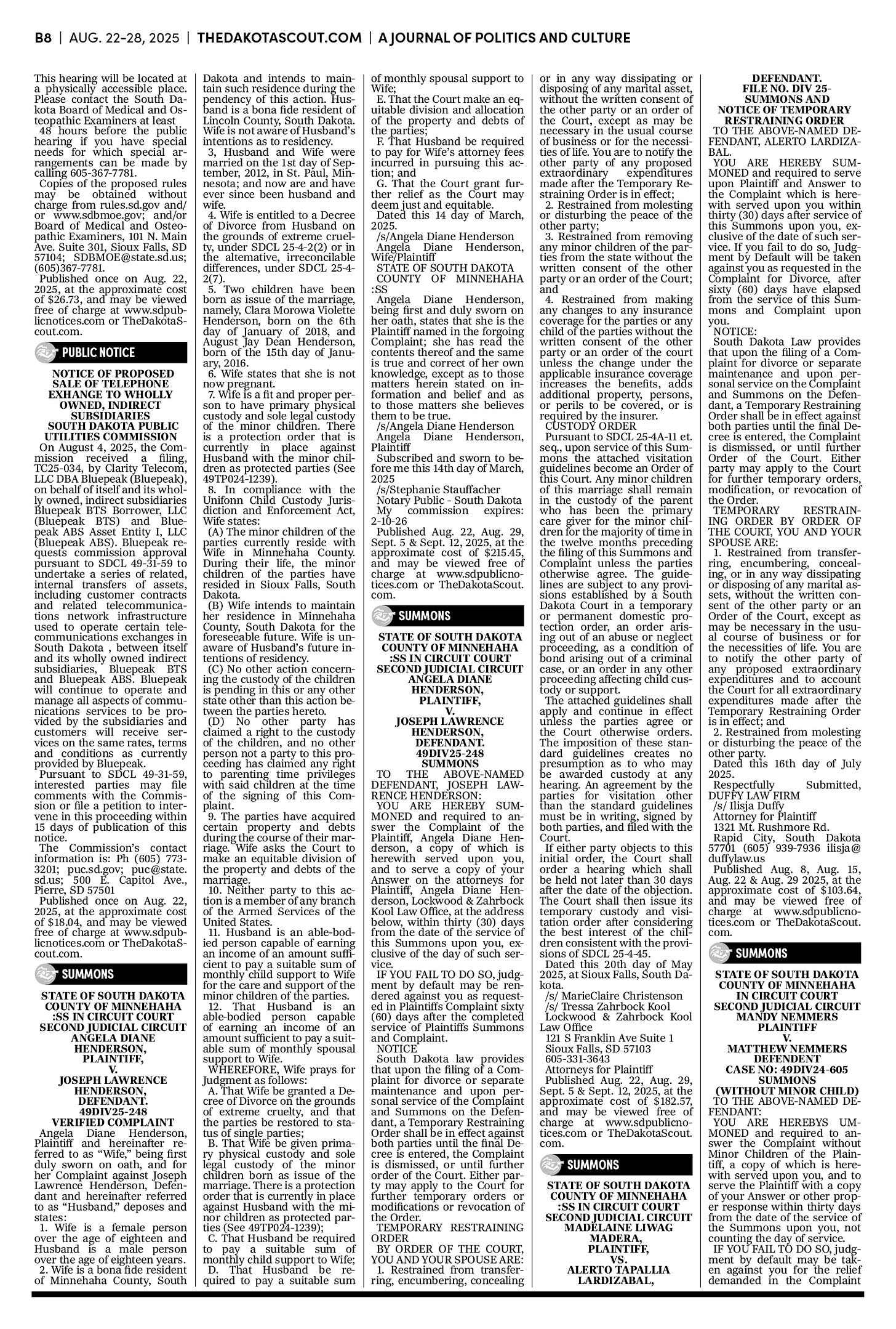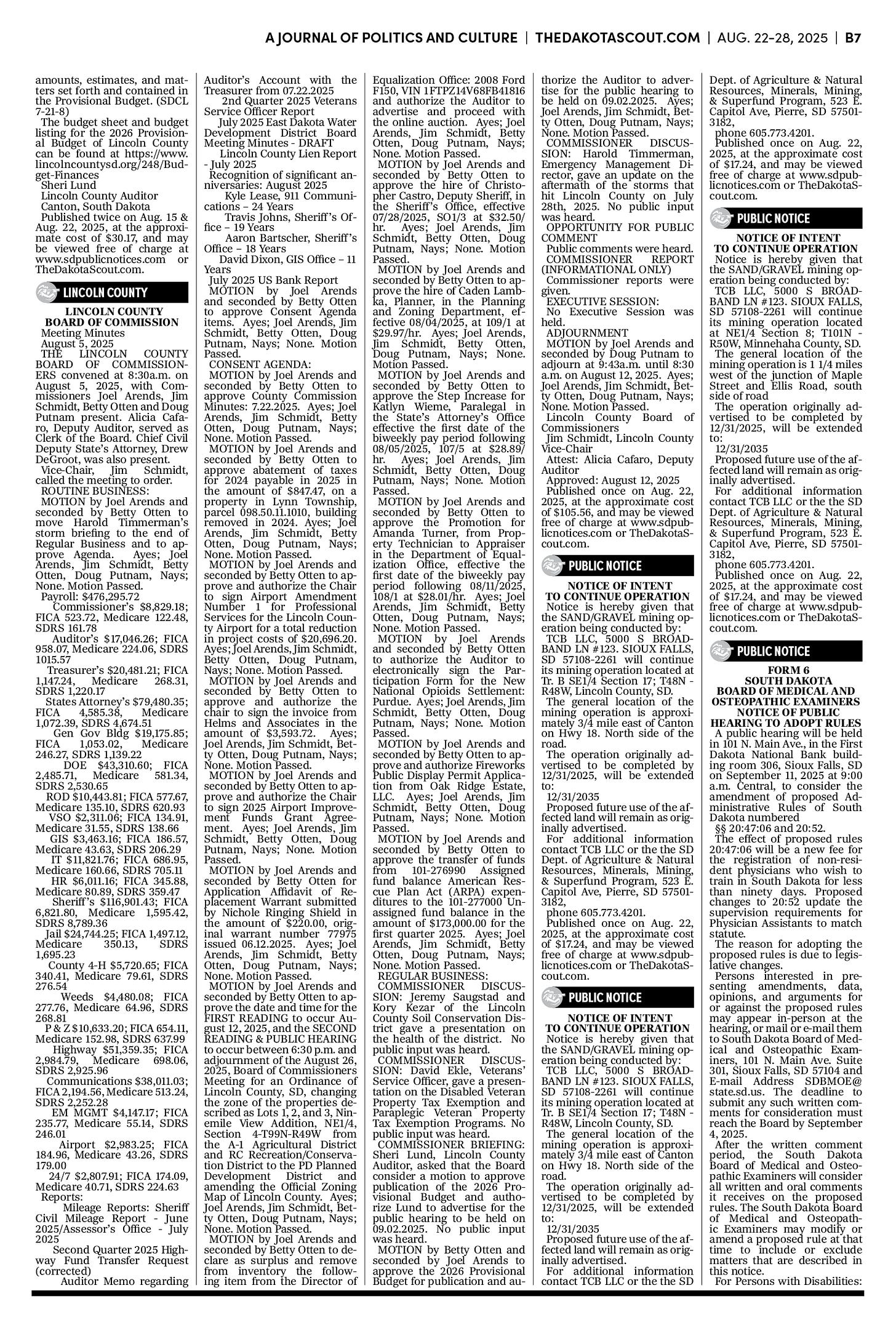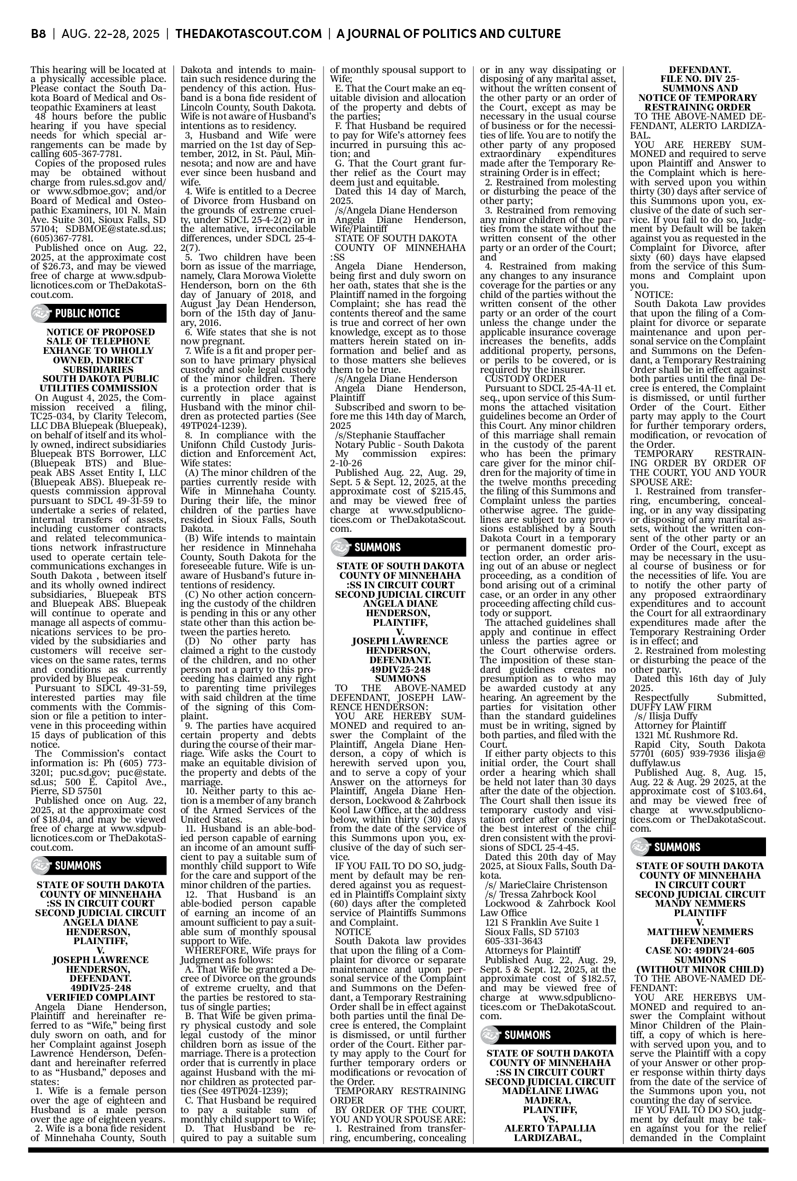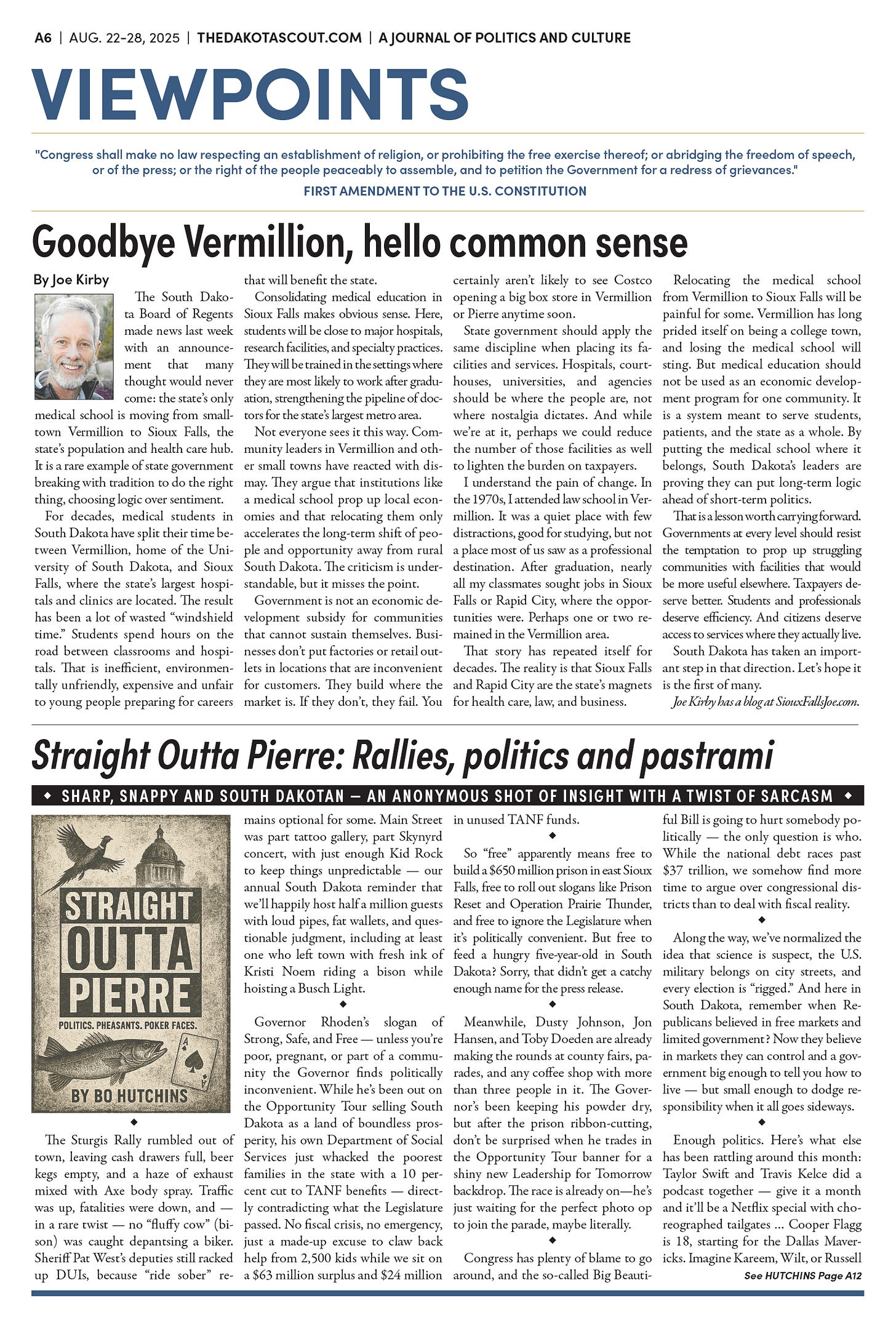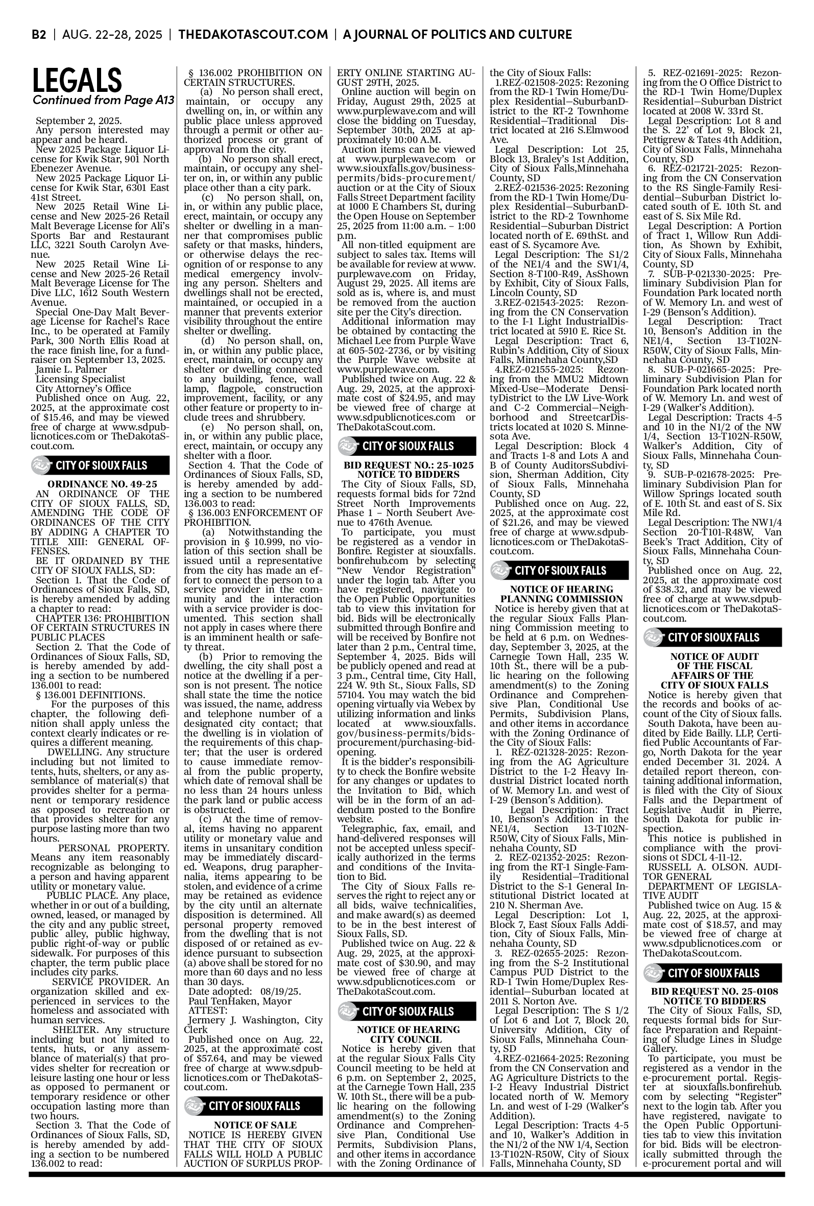 FREE TO READThe Dakota Scout E-editionVol. 2 No. 52 | Aug. 22 - 28, 2025The Dakota ScoutAug 25, 20253ShareThe Dakota Scout is reader-supported. To receive new posts and support our work, consider becoming a paid subscriber.SubscribeTo place an obituary, email obits@thedakotascout.com SiouxFalls.BusinessLegals & Public Notices: August 22, 2025Aug 22Read full storySports content courtesy SiouxFallsLive.comPreviousNext