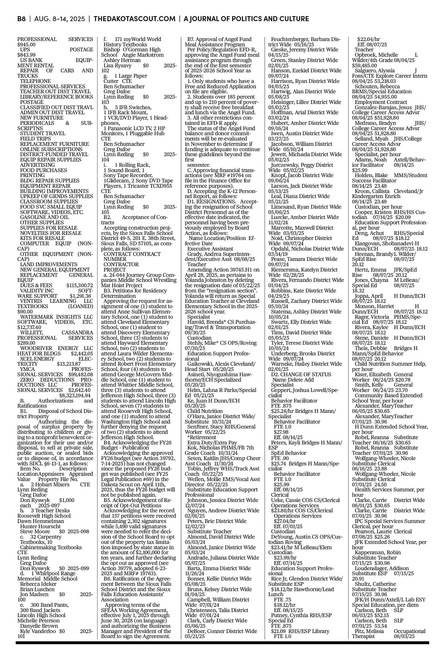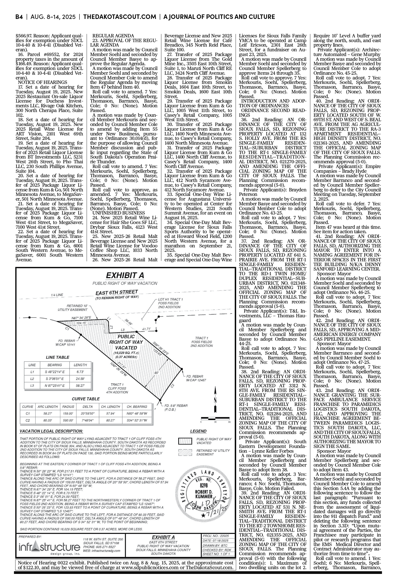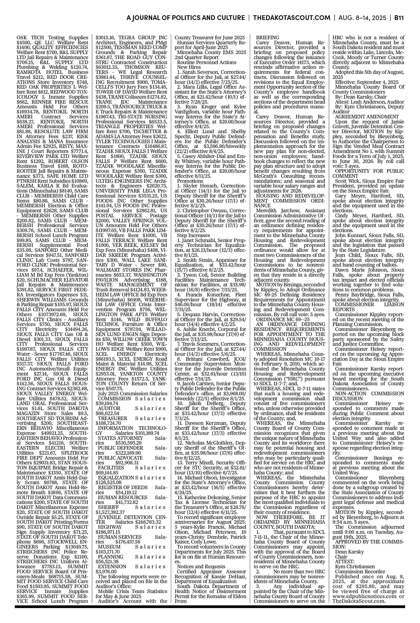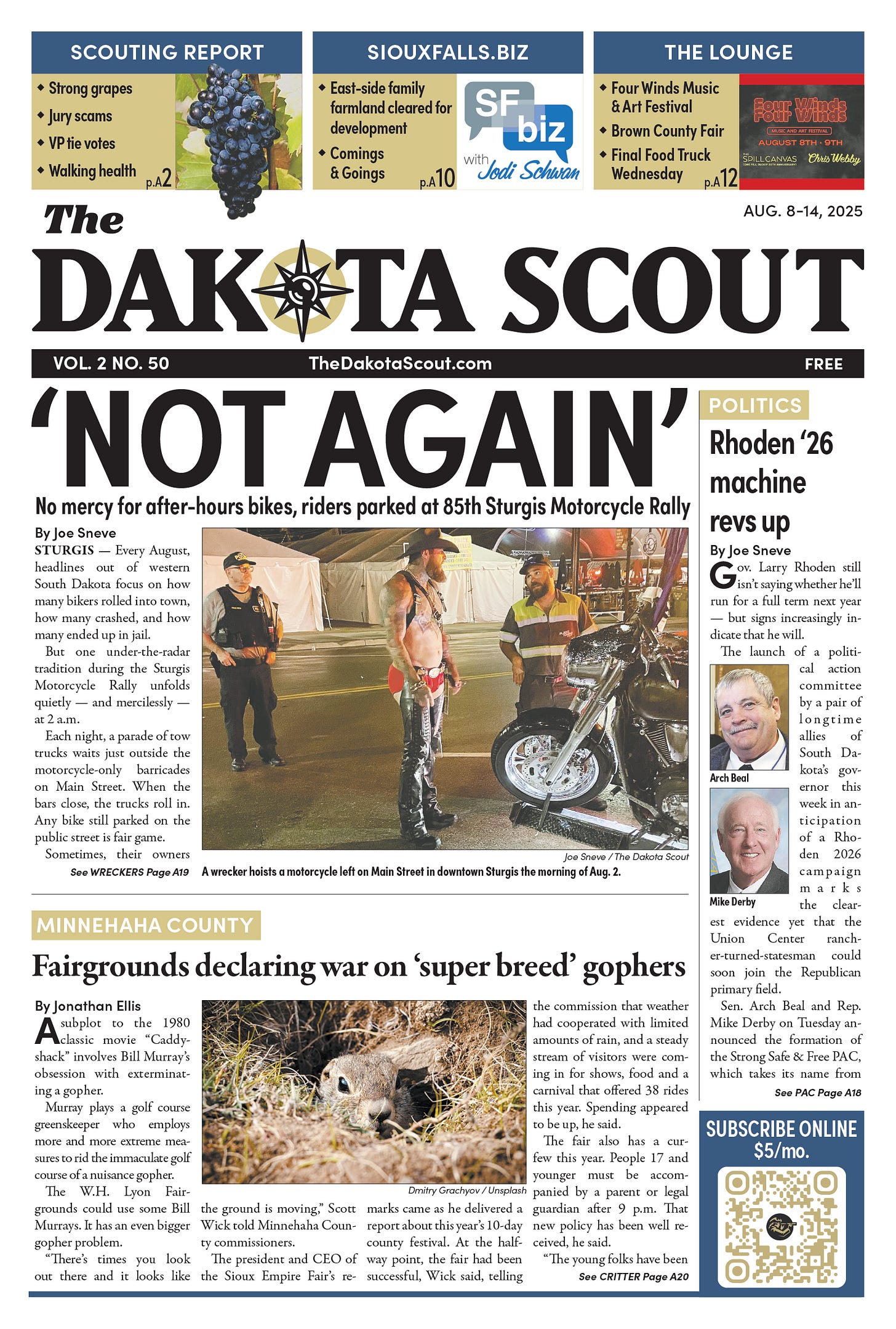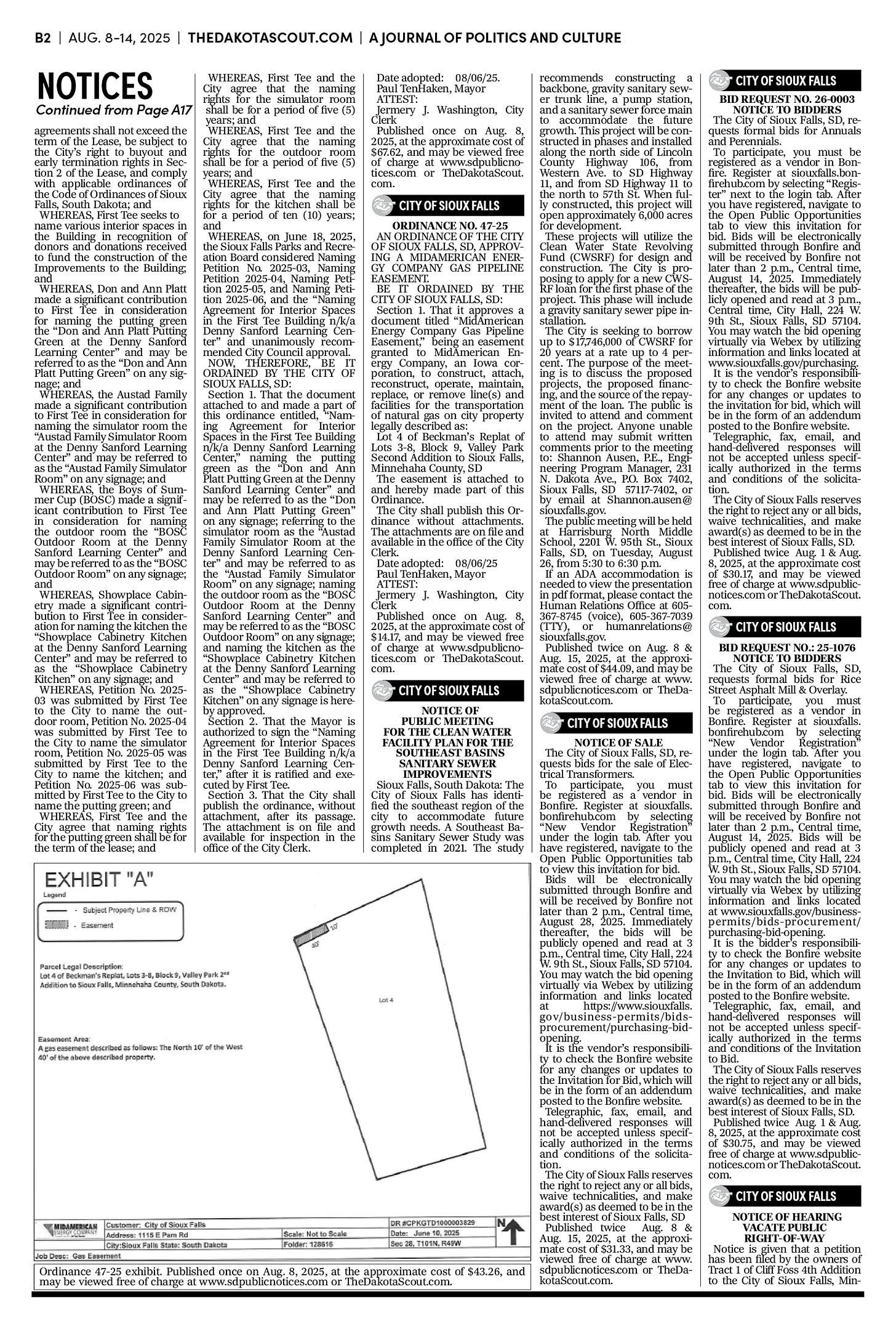 FREE TO READThe Dakota Scout e-editionVol. 2 No. 50 | Aug. 8-14, 2025The Dakota ScoutAug 11, 20256ShareThe Dakota Scout is reader-supported. To receive new posts and support our work, consider becoming a free or paid subscriber.SubscribeTo place an obituary, email obits@thedakotascout.comLegals & Public Notices: August 8, 2025Aug 8Read full storyBusiness content courtesy SiouxFalls.BusinessSports content courtesy SiouxFallsLive.comPreviousNext