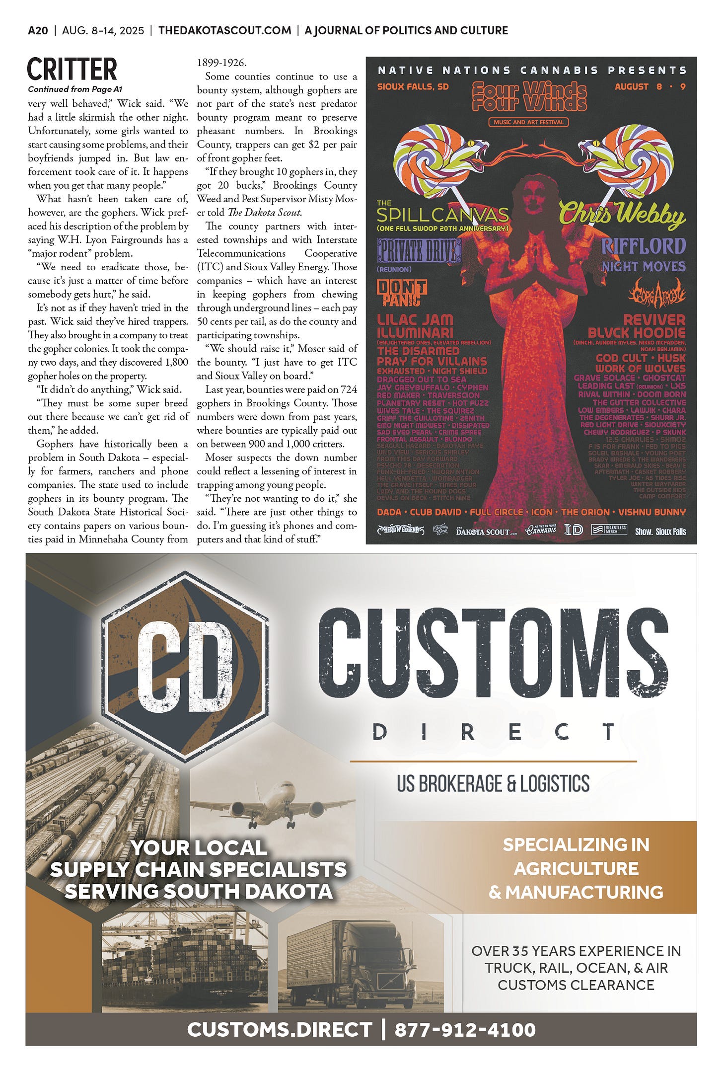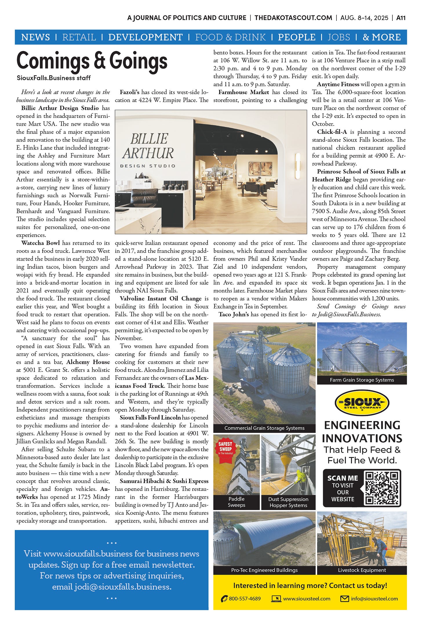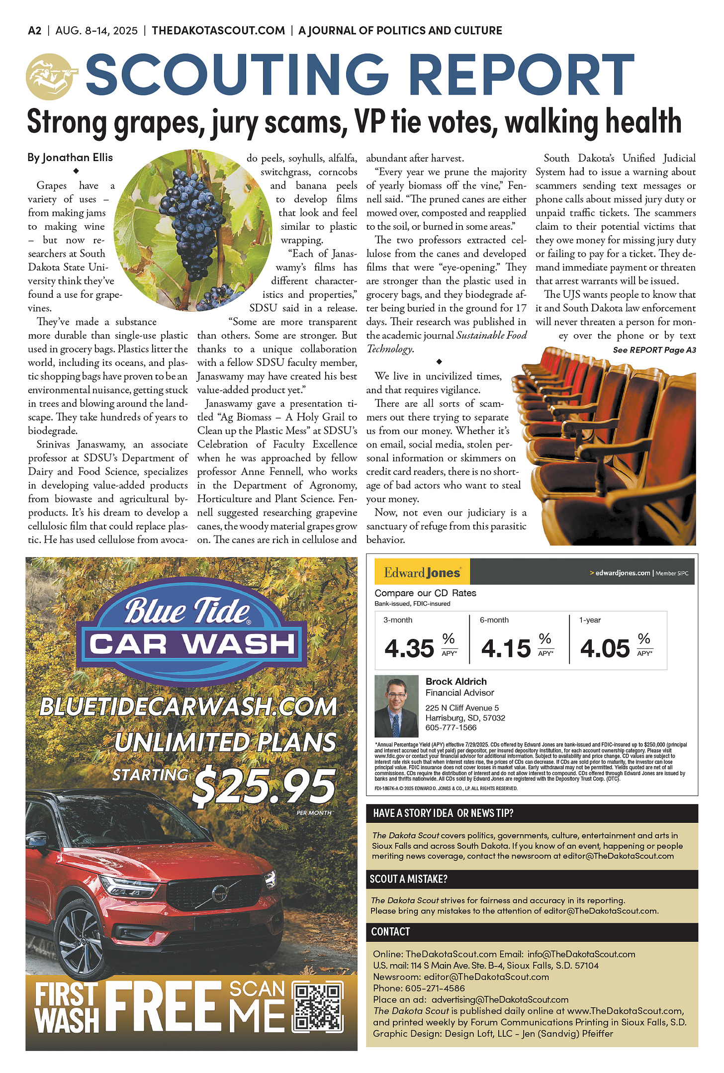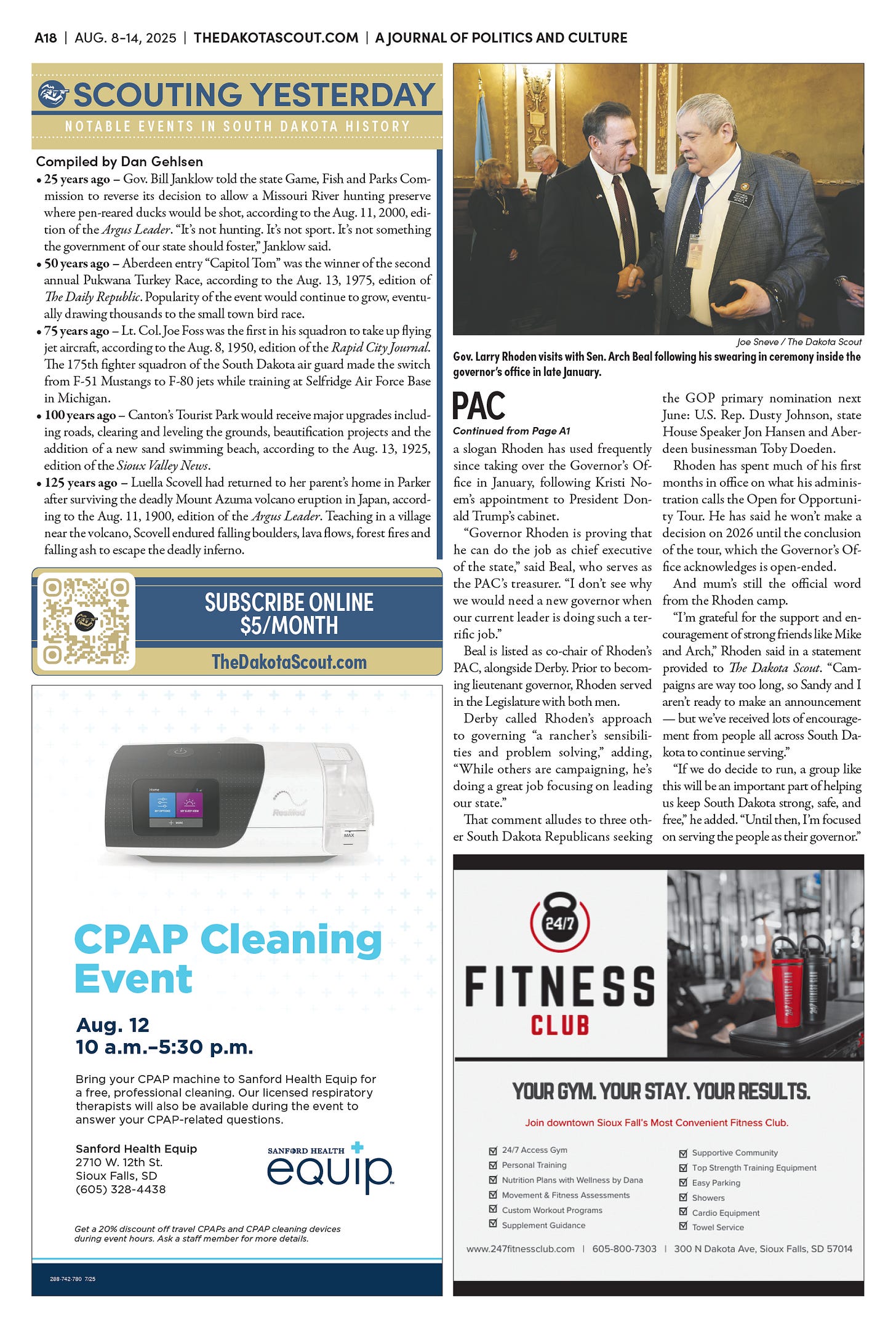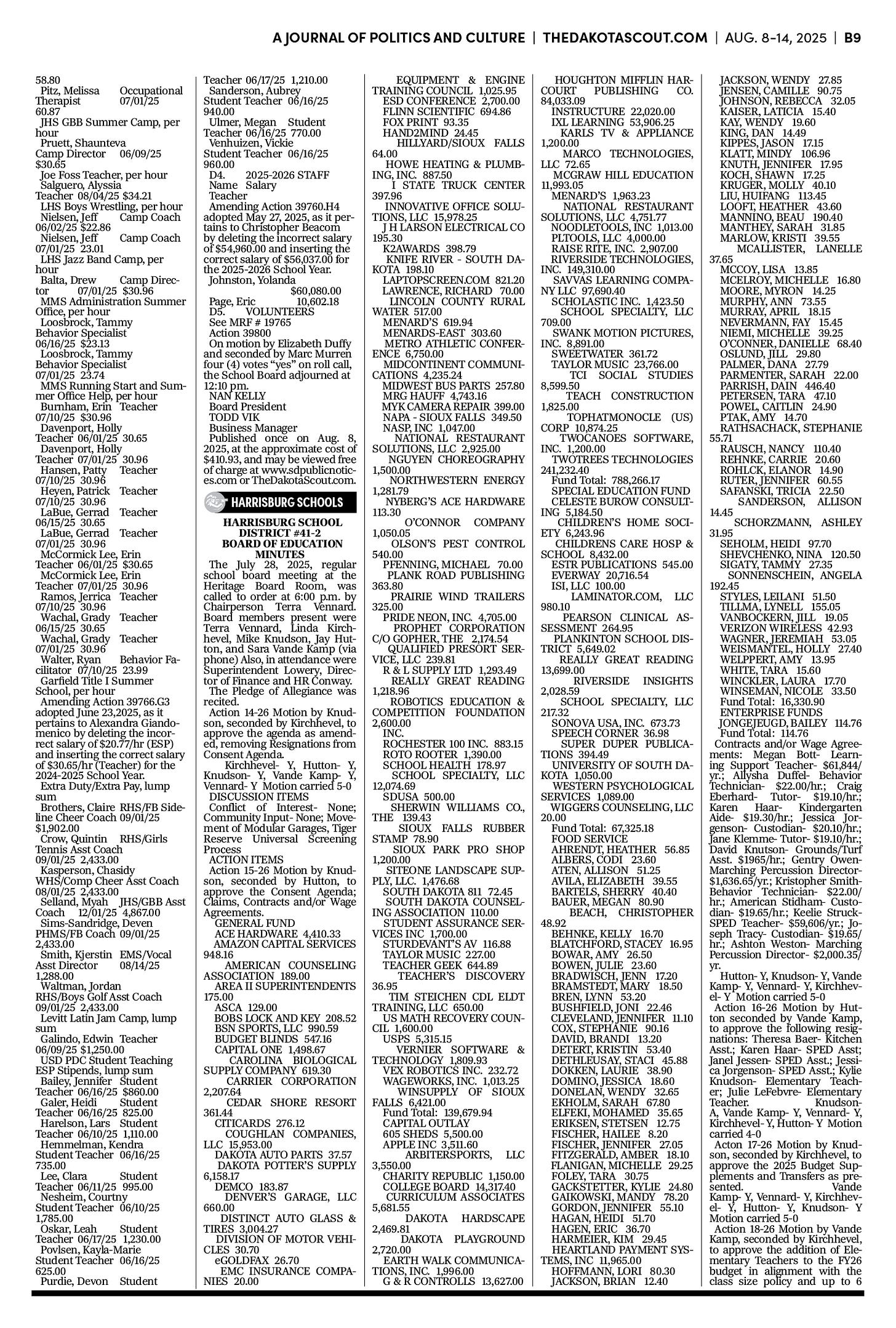 FREE TO READThe Dakota Scout e-editionVol. 2 No. 50 | Aug. 8-14, 2025The Dakota ScoutAug 11, 20256ShareThe Dakota Scout is reader-supported. To receive new posts and support our work, consider becoming a free or paid subscriber.SubscribeTo place an obituary, email obits@thedakotascout.comLegals & Public Notices: August 8, 2025Aug 8Read full storyBusiness content courtesy SiouxFalls.BusinessSports content courtesy SiouxFallsLive.comPreviousNext