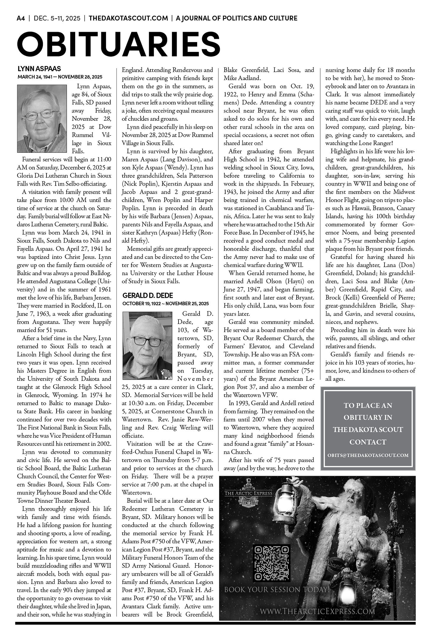 To publish an obituary in The Dakota Scout, email obits@thedakotascout.com