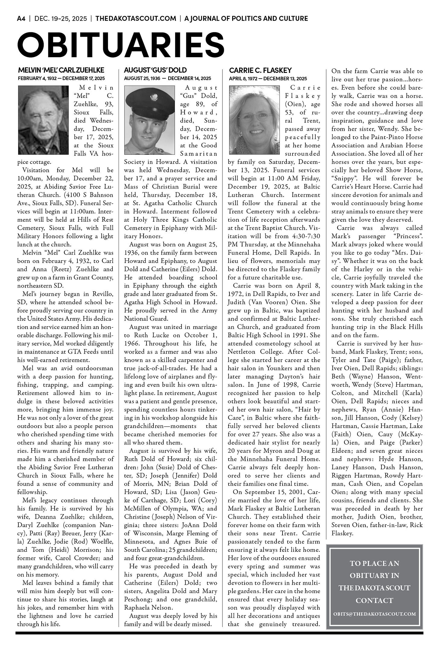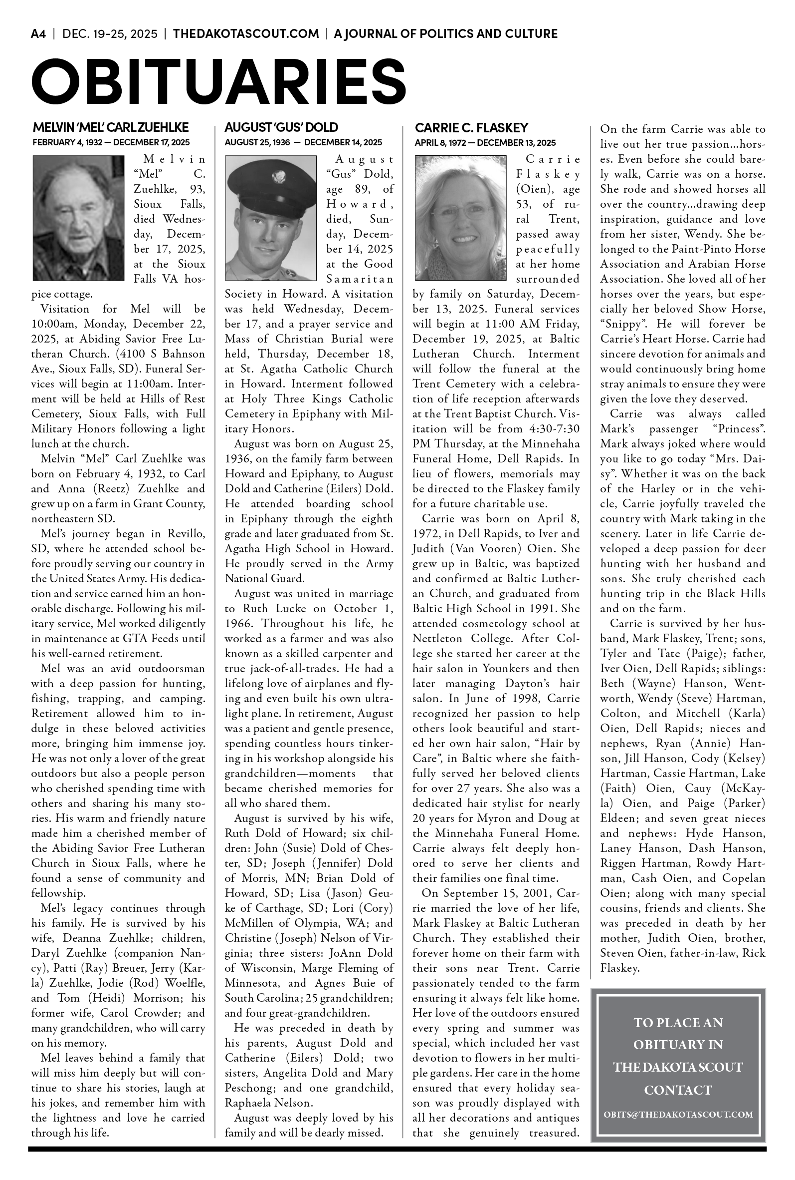 To publish an obituary in The Dakota Scout, email obits@thedakotascout.com