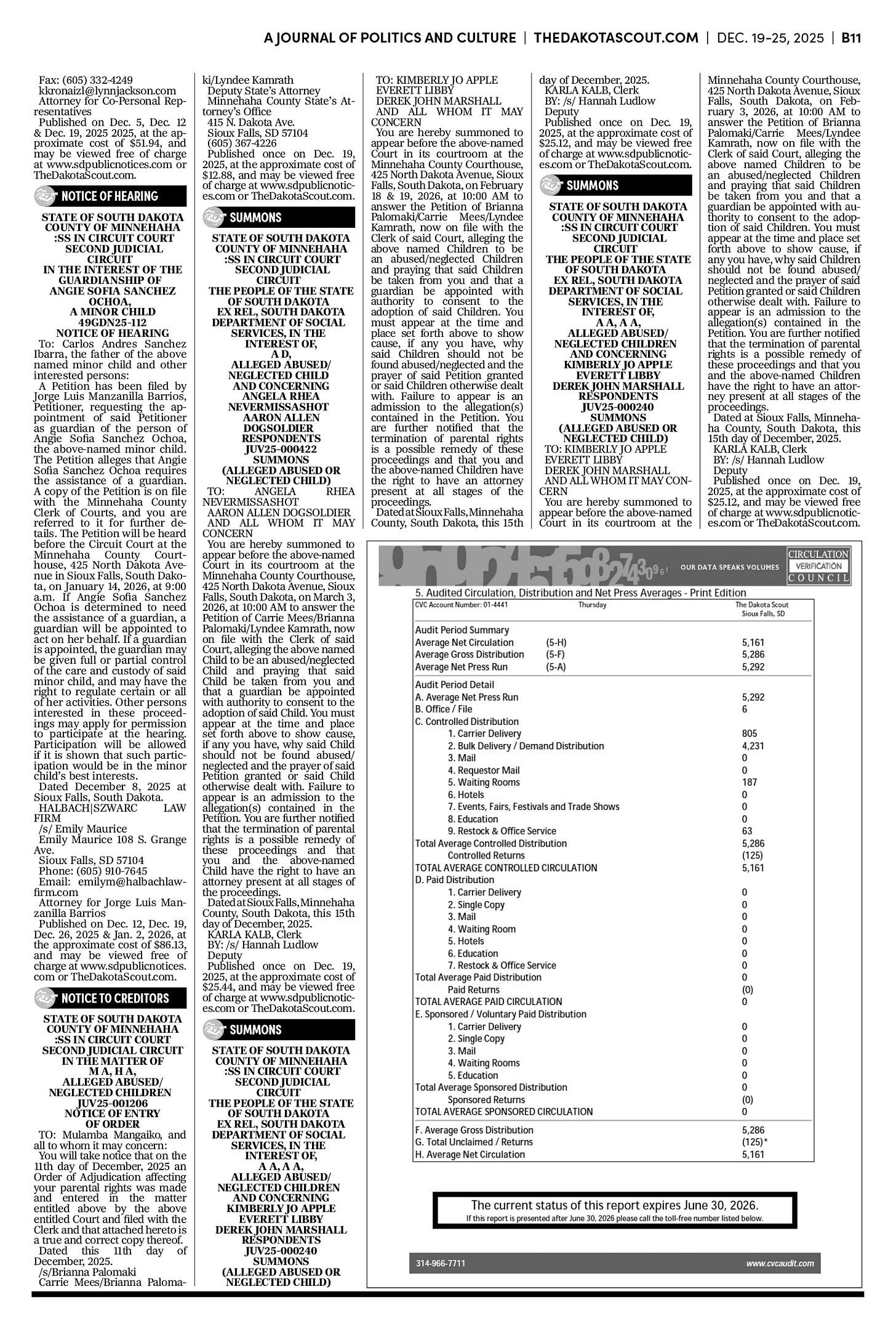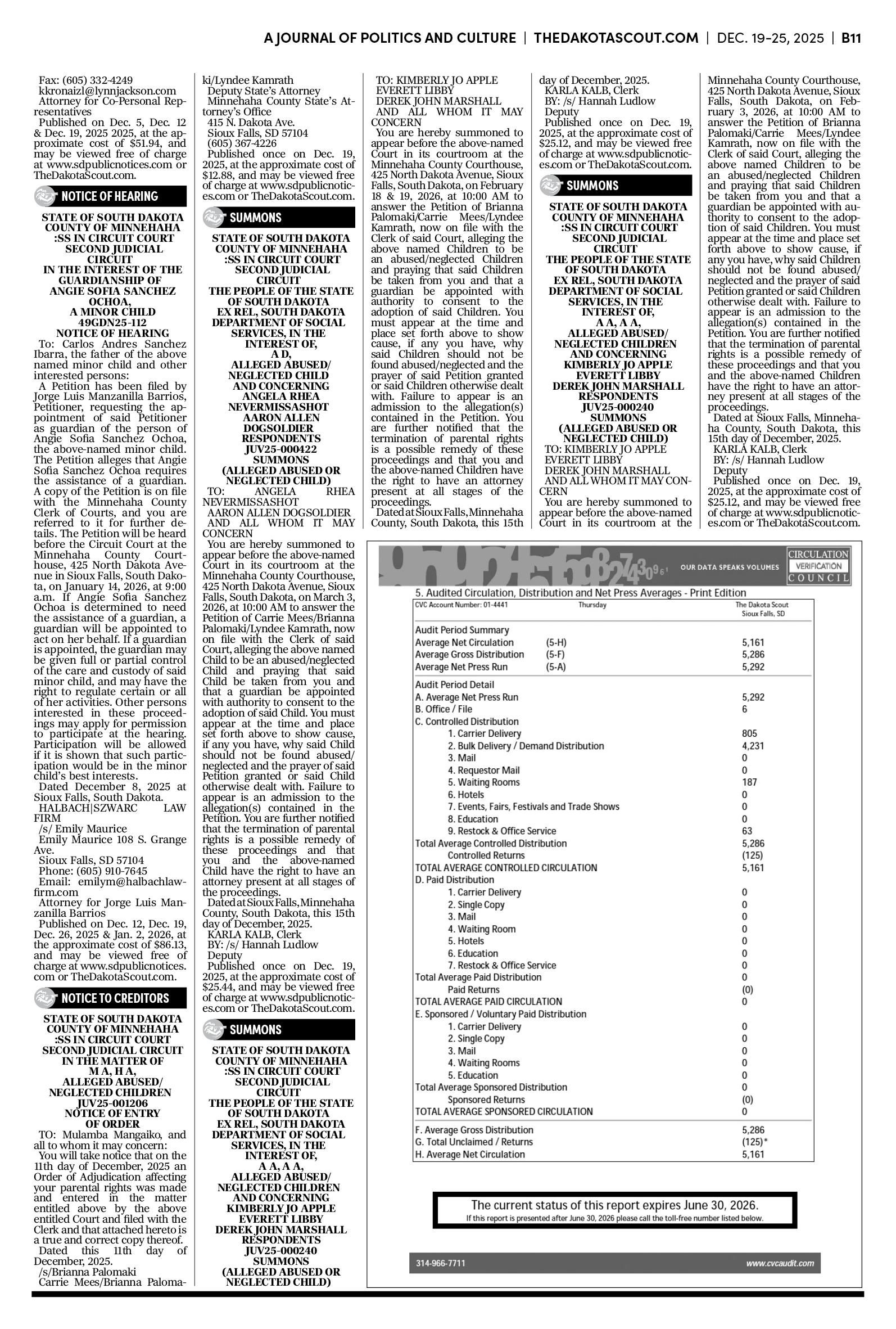 To place a public notice in The Dakota Scout, email legals@thedakotascout.com