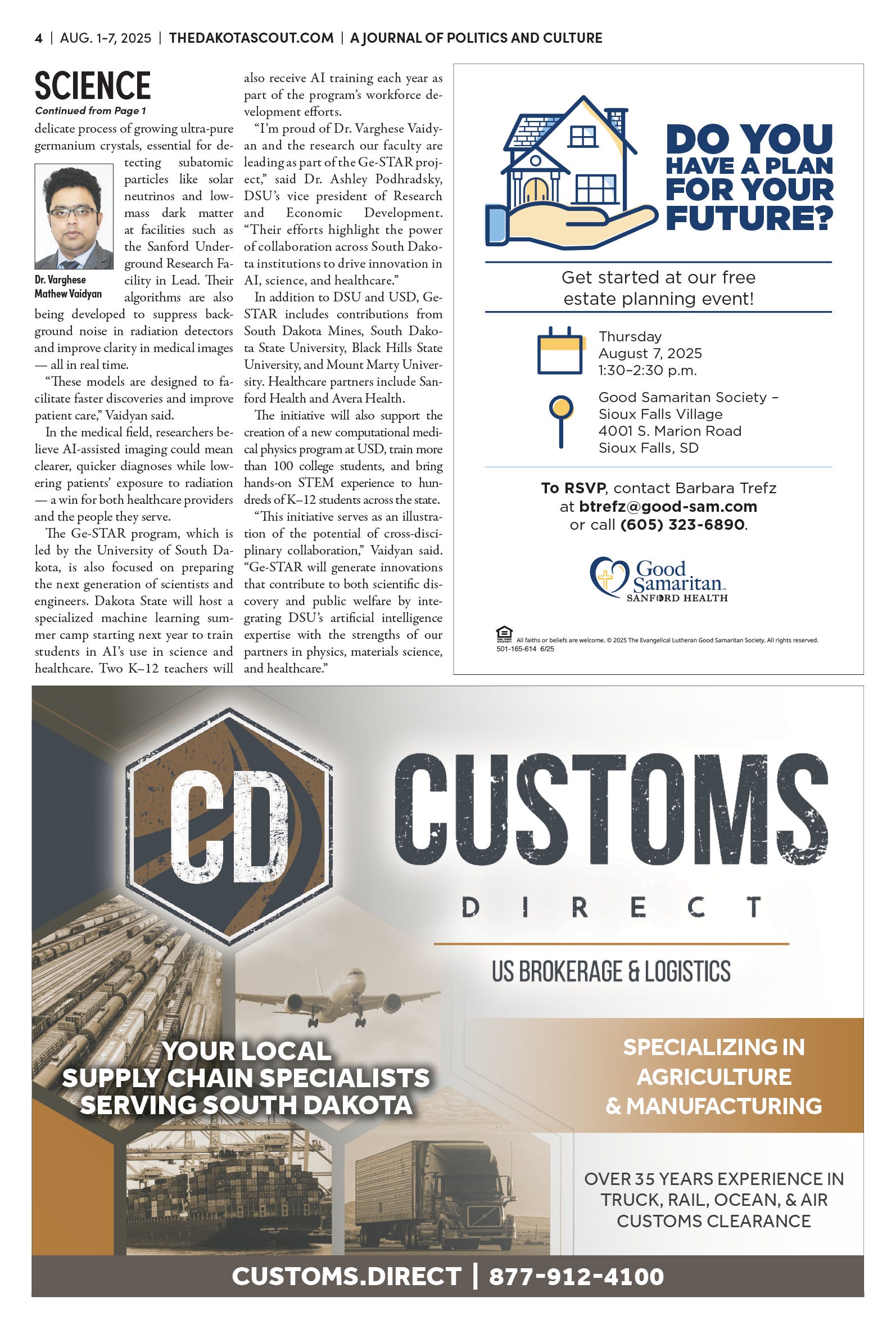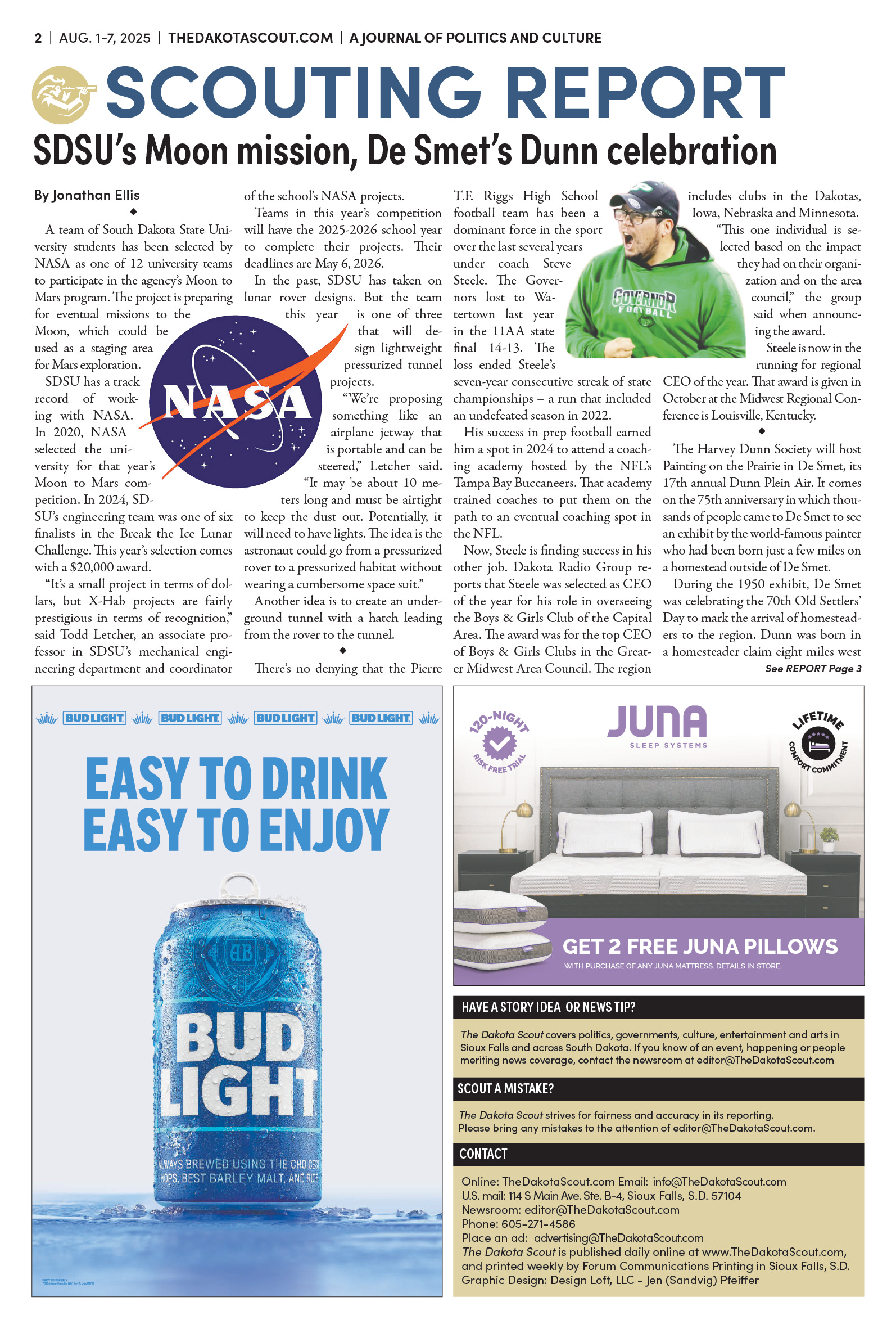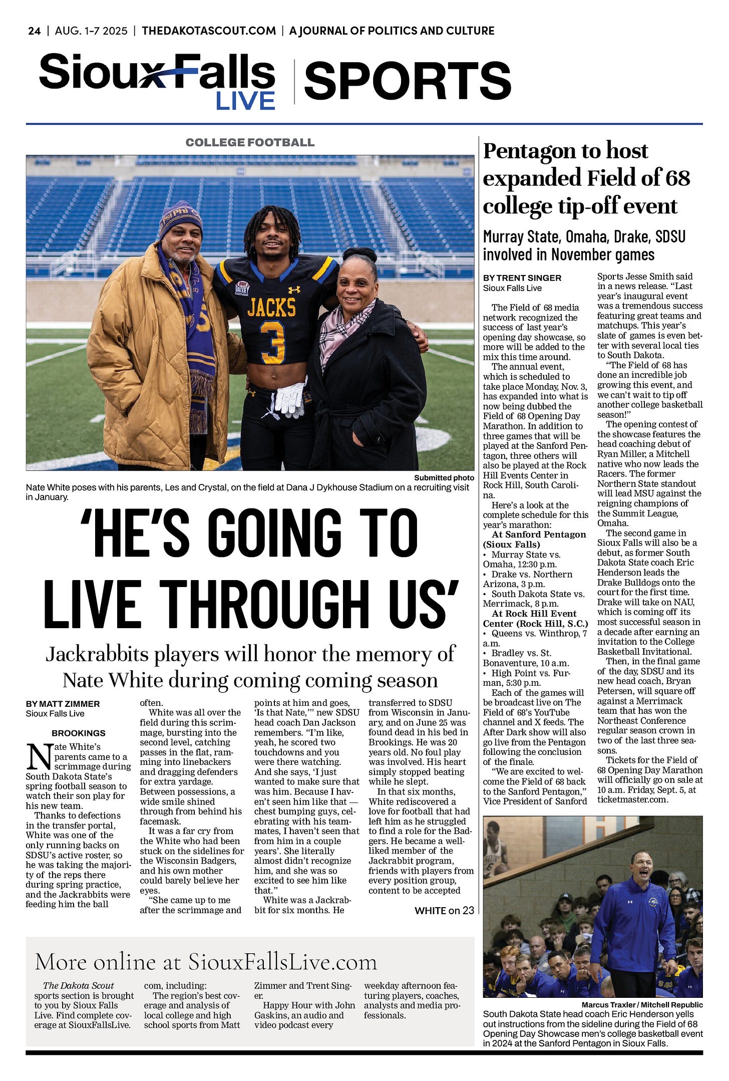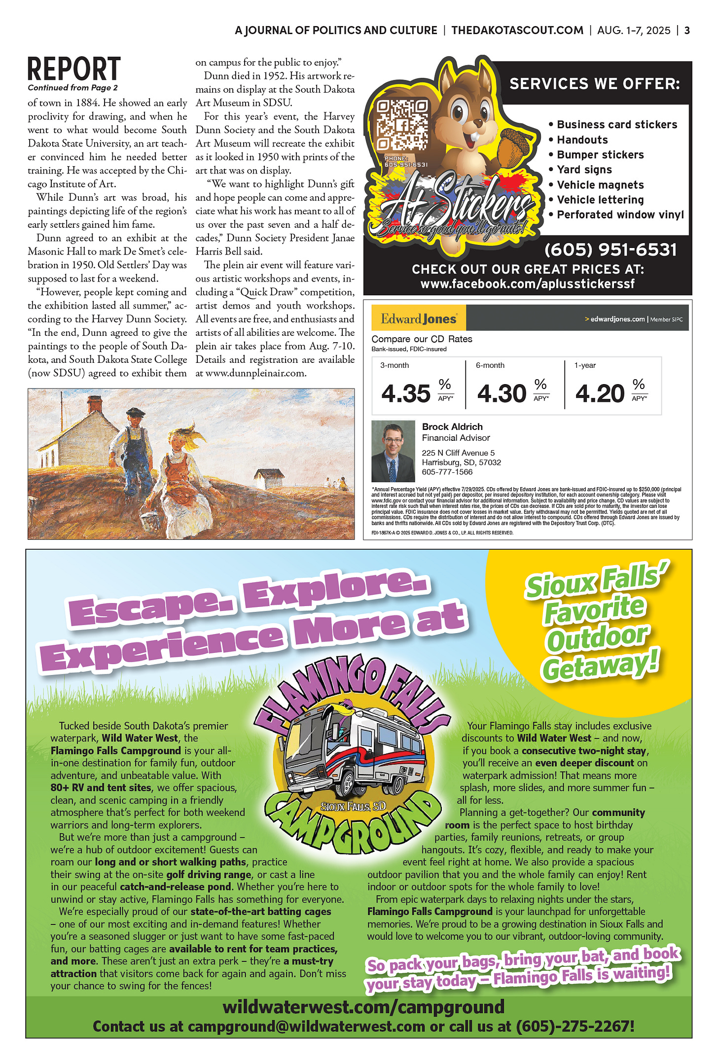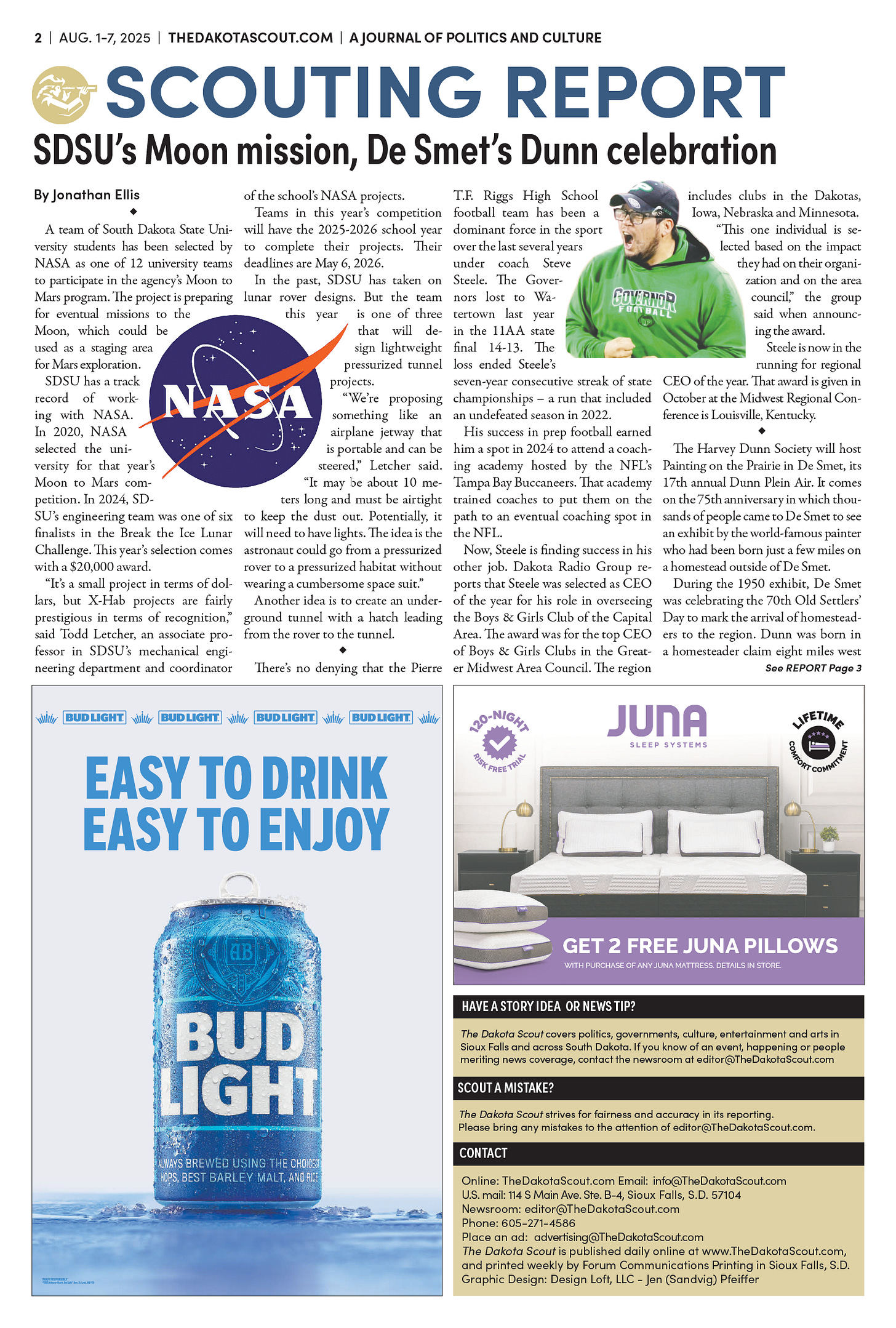 FREE TO READThe Dakota Scout E-edition Vol. 2 No. 49 | Aug. 1-7, 2025 The Dakota ScoutAug 04, 20253ShareThe Dakota Scout is reader-supported. To receive new posts and support our work, consider becoming a free or paid subscriber.SubscribeSubmit an obituary by emailing obits@thedakotascout.comLegals & Public Notices: July 25, 2025Jul 25Read full storyBusiness news courtesy SiouxFalls.BusinessSports courtesy SiouxFallsLive.comPreviousNext