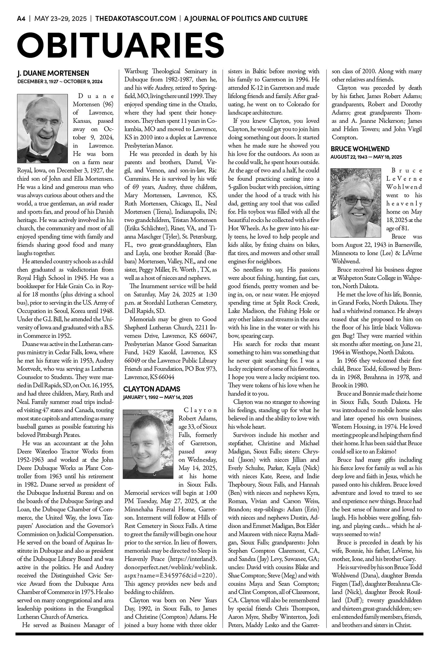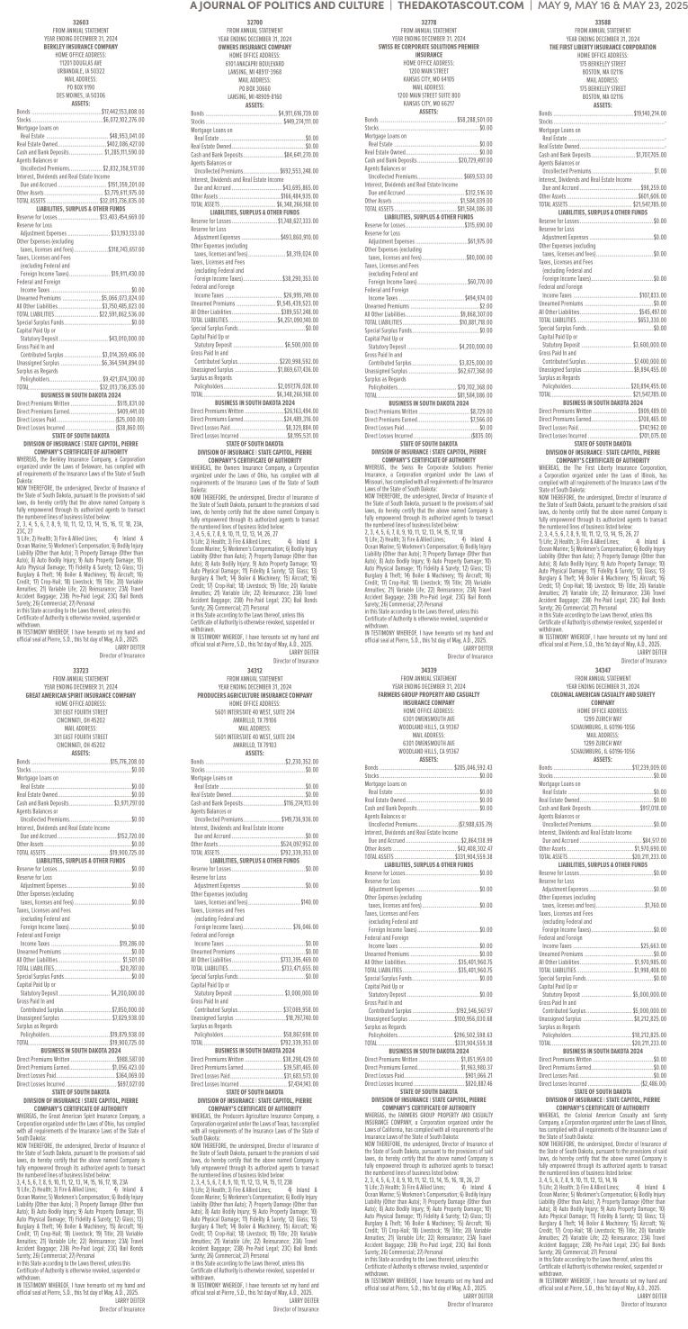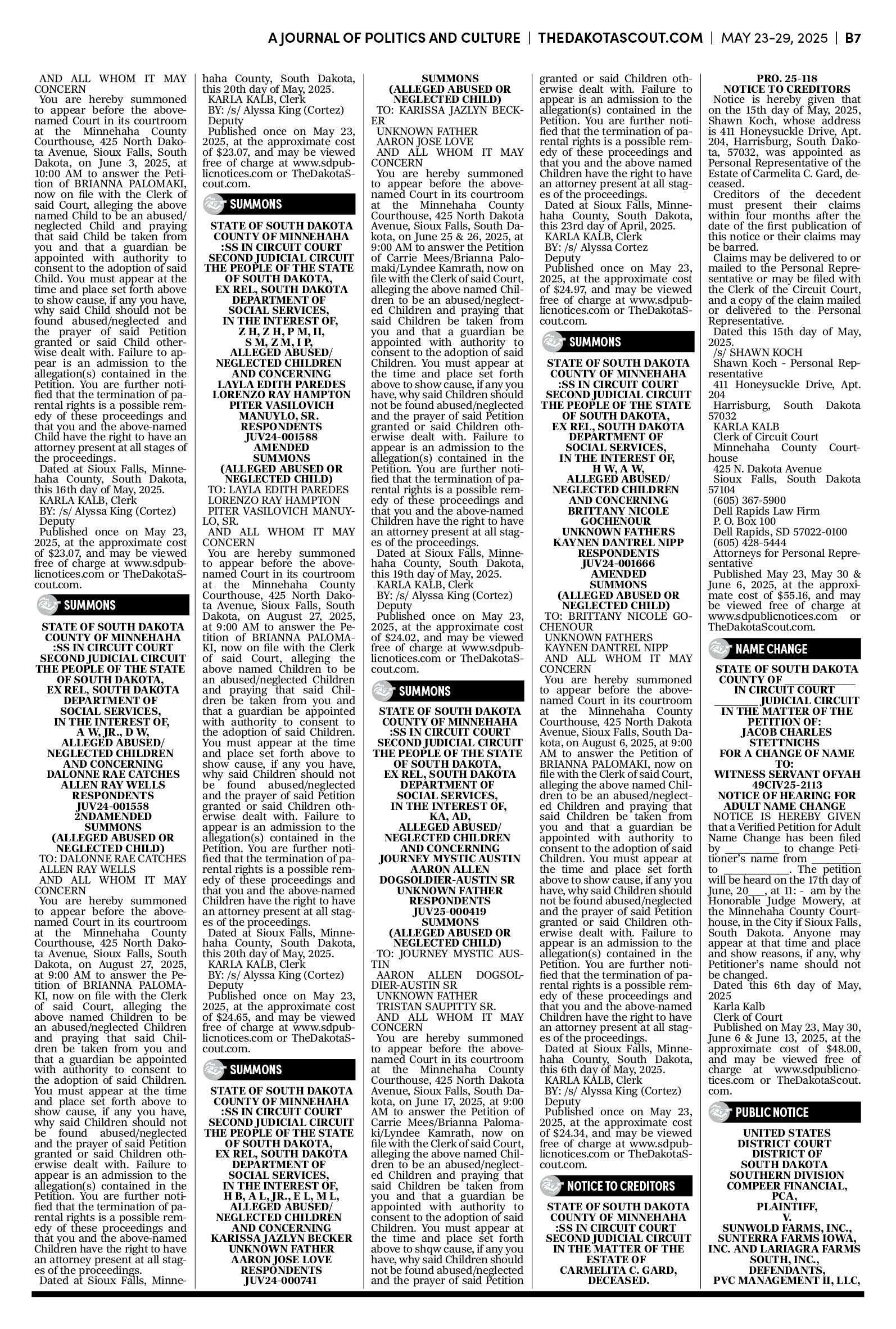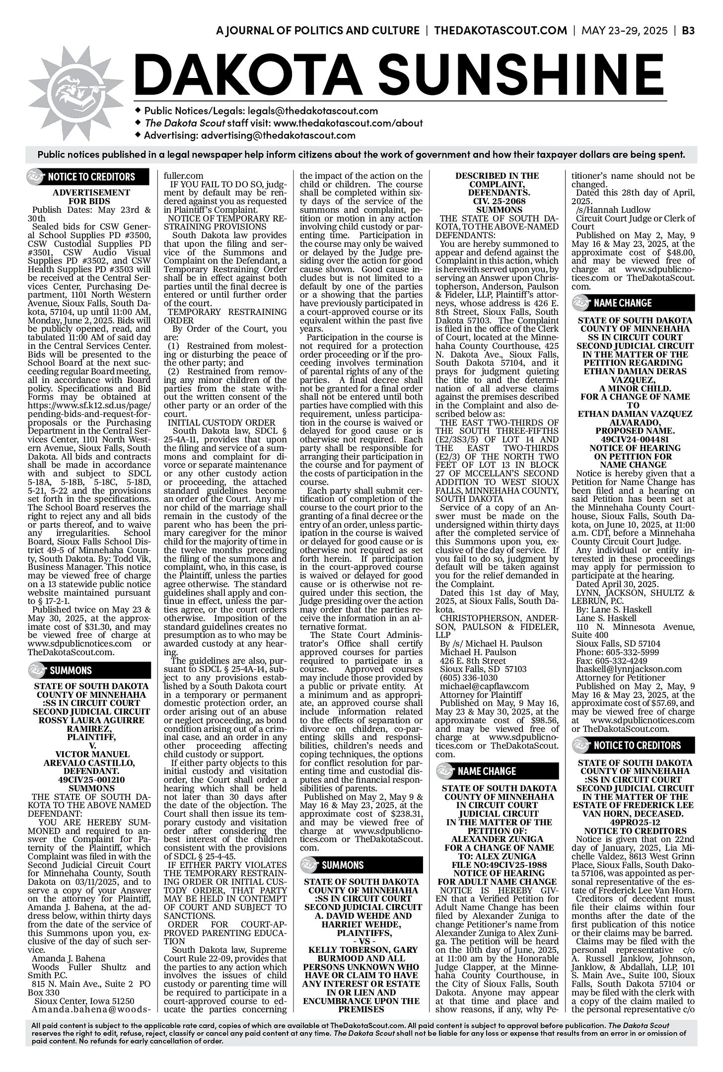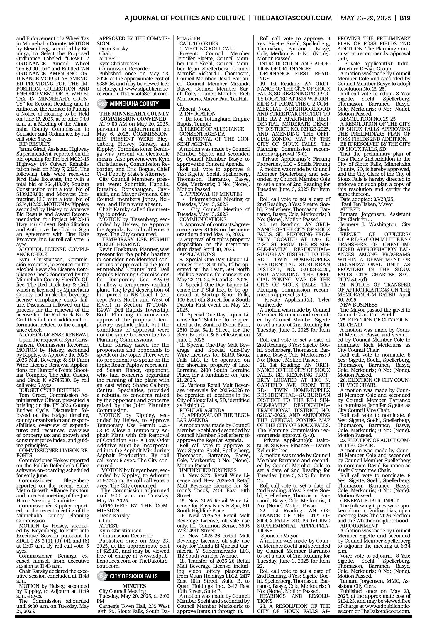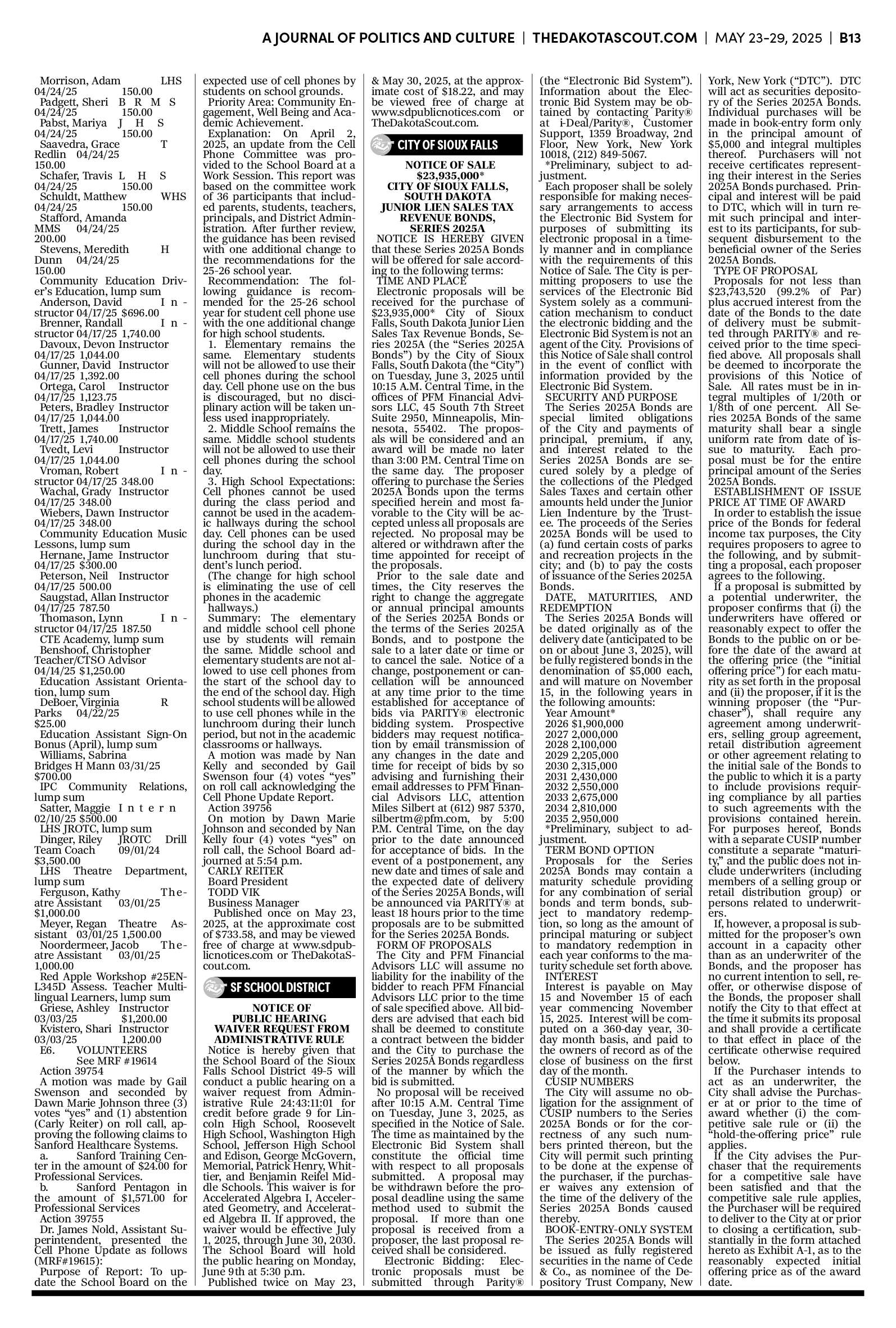 FREE TO READThe Dakota Scout E-edition Vol. 2 No. 39 | May 23-29, 2025The Dakota ScoutMay 26, 20252ShareThe Dakota Scout is reader-supported. To receive new posts and support our work, consider becoming a free or paid subscriber.SubscribeTo submit an obituary, email obits@thedakotascout.comSiouxFalls.BusinessThe Dakota Scout is reader-supported. To receive new posts and support our work, consider becoming a free or paid subscriber.SubscribeSiouxFallsLive.comLegals & Public Notices: May 23, 2025May 23Read full storyPreviousNext