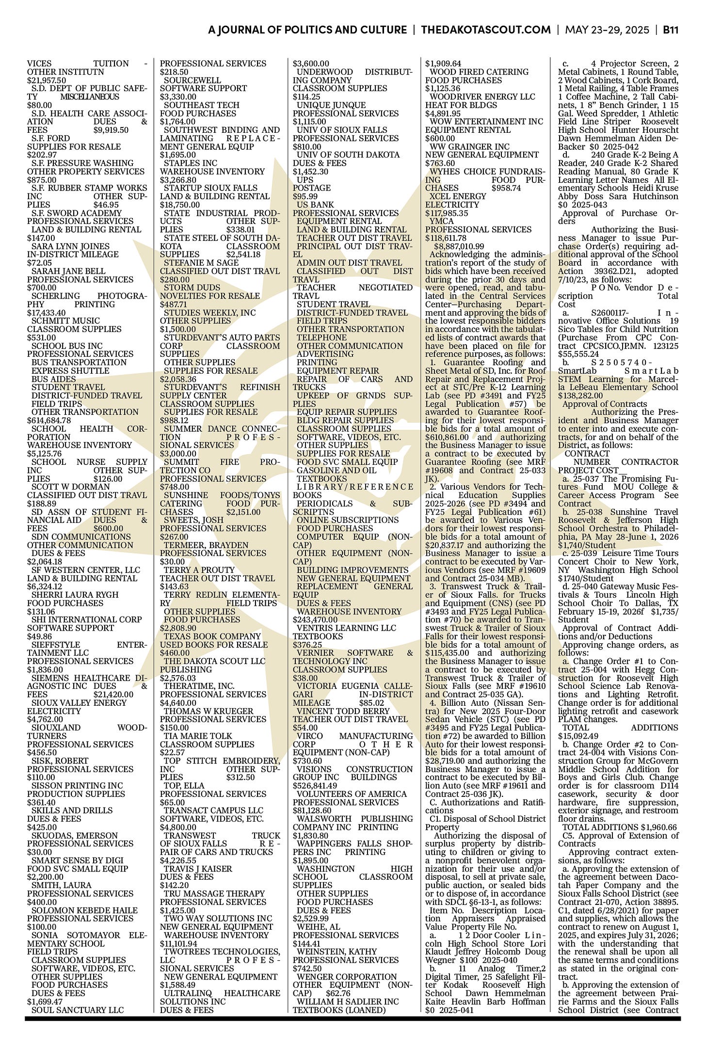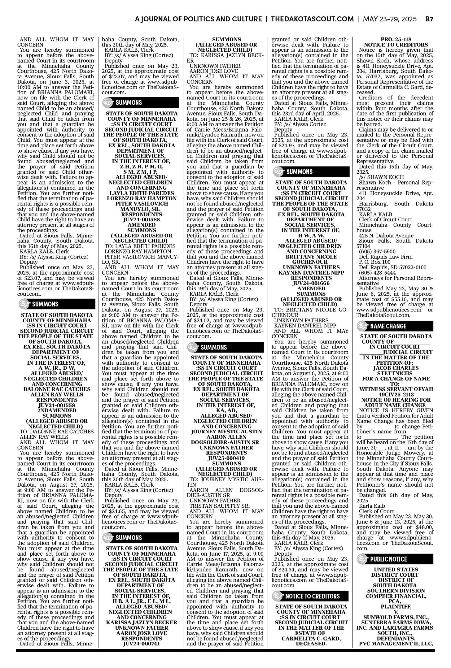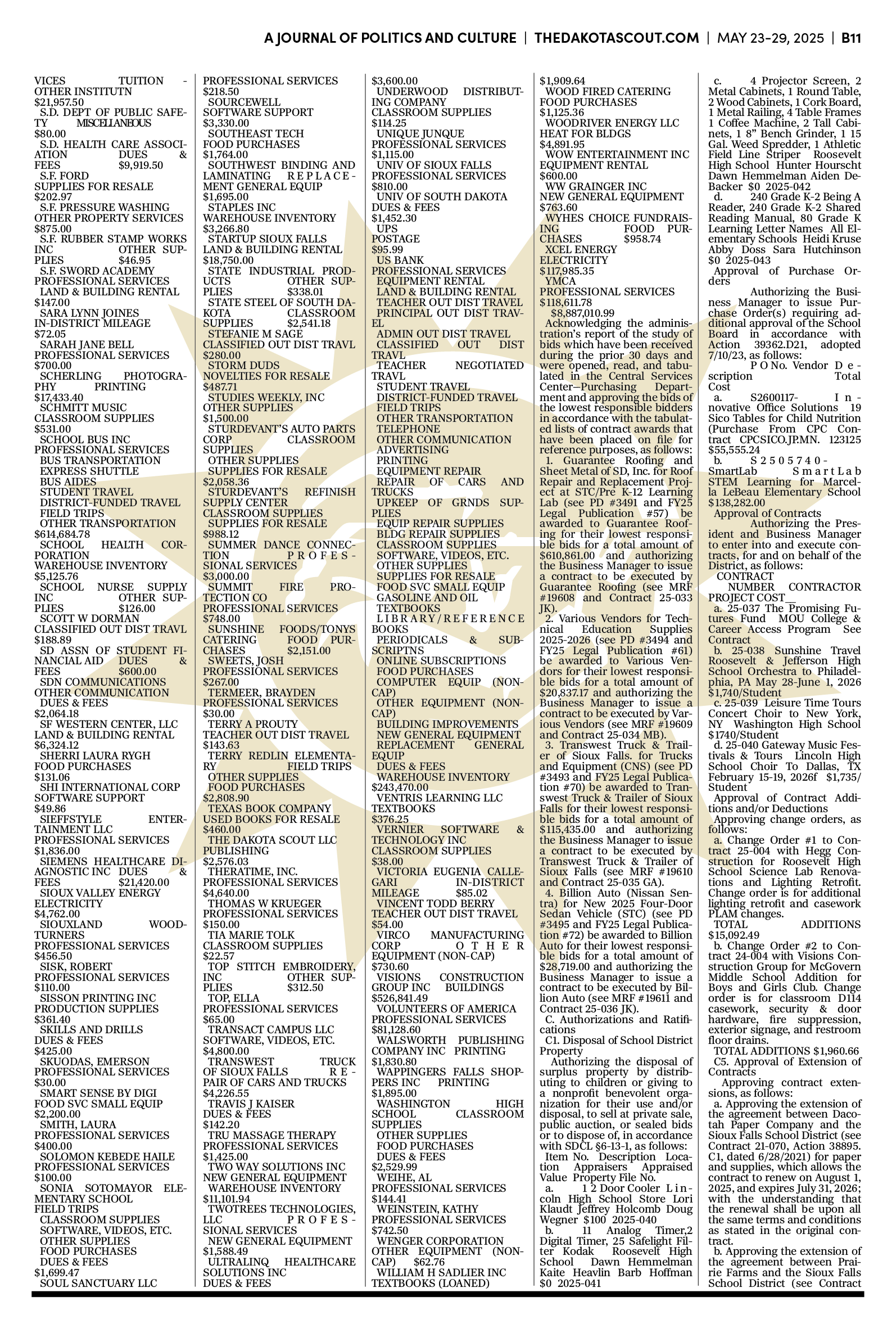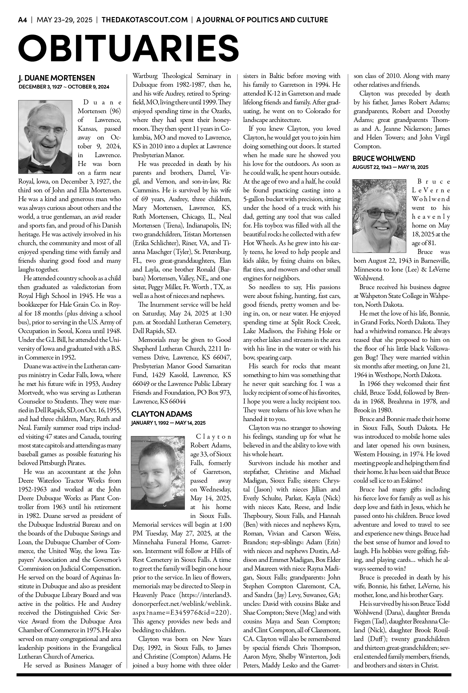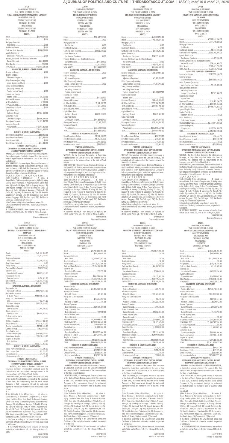 FREE TO READThe Dakota Scout E-edition Vol. 2 No. 39 | May 23-29, 2025The Dakota ScoutMay 26, 20252ShareThe Dakota Scout is reader-supported. To receive new posts and support our work, consider becoming a free or paid subscriber.SubscribeTo submit an obituary, email obits@thedakotascout.comSiouxFalls.BusinessThe Dakota Scout is reader-supported. To receive new posts and support our work, consider becoming a free or paid subscriber.SubscribeSiouxFallsLive.comLegals & Public Notices: May 23, 2025May 23Read full storyPreviousNext