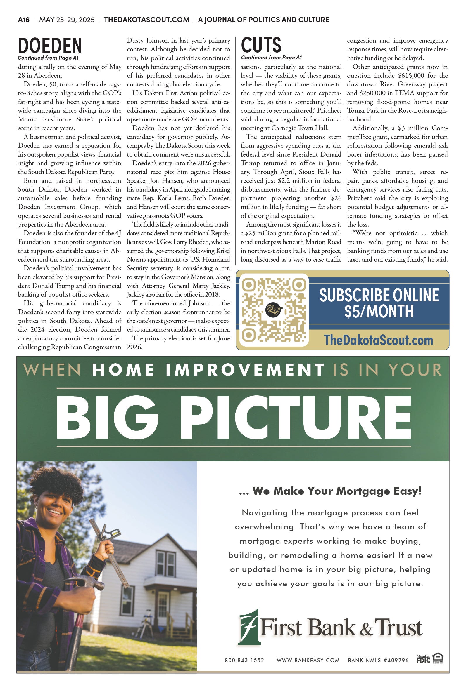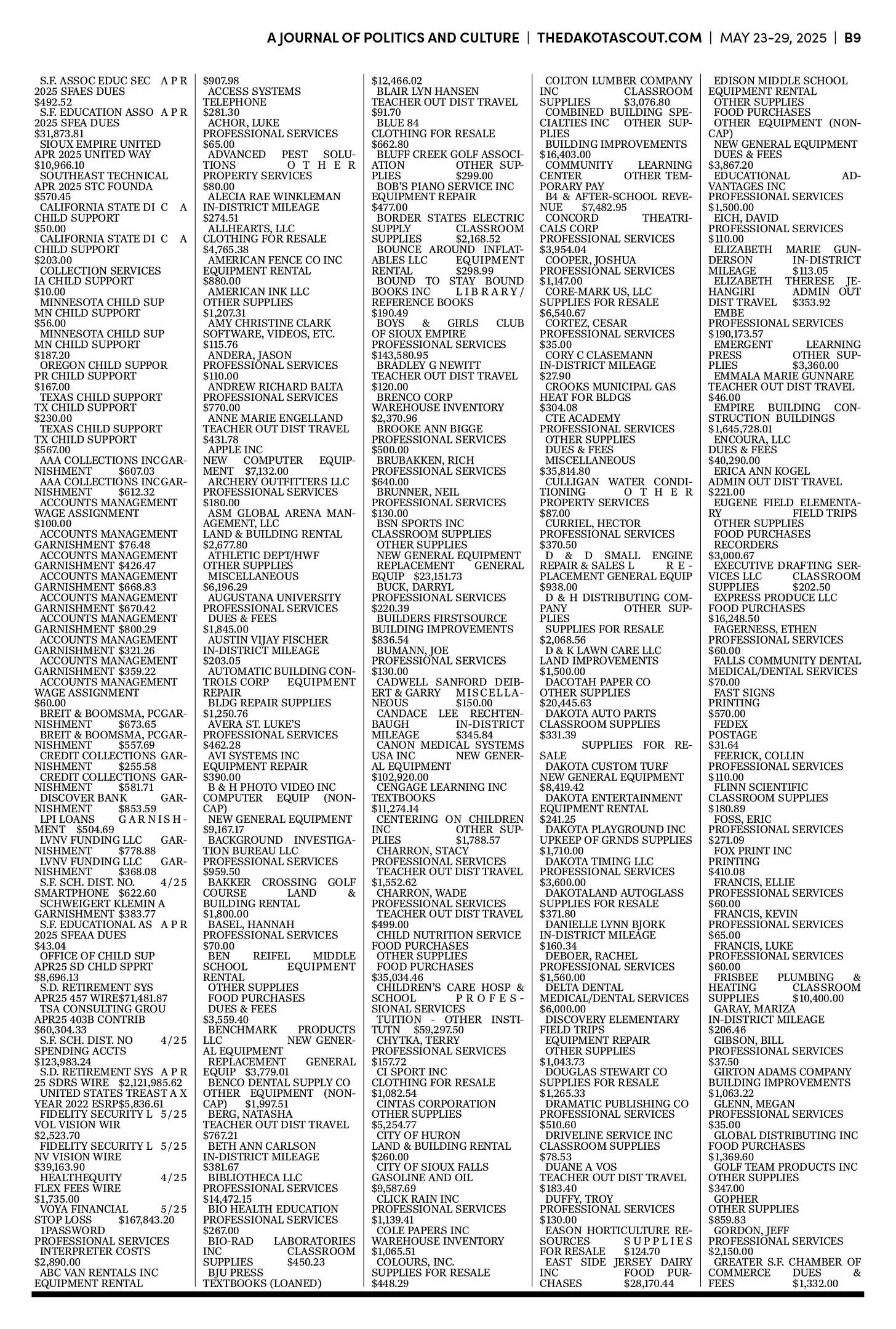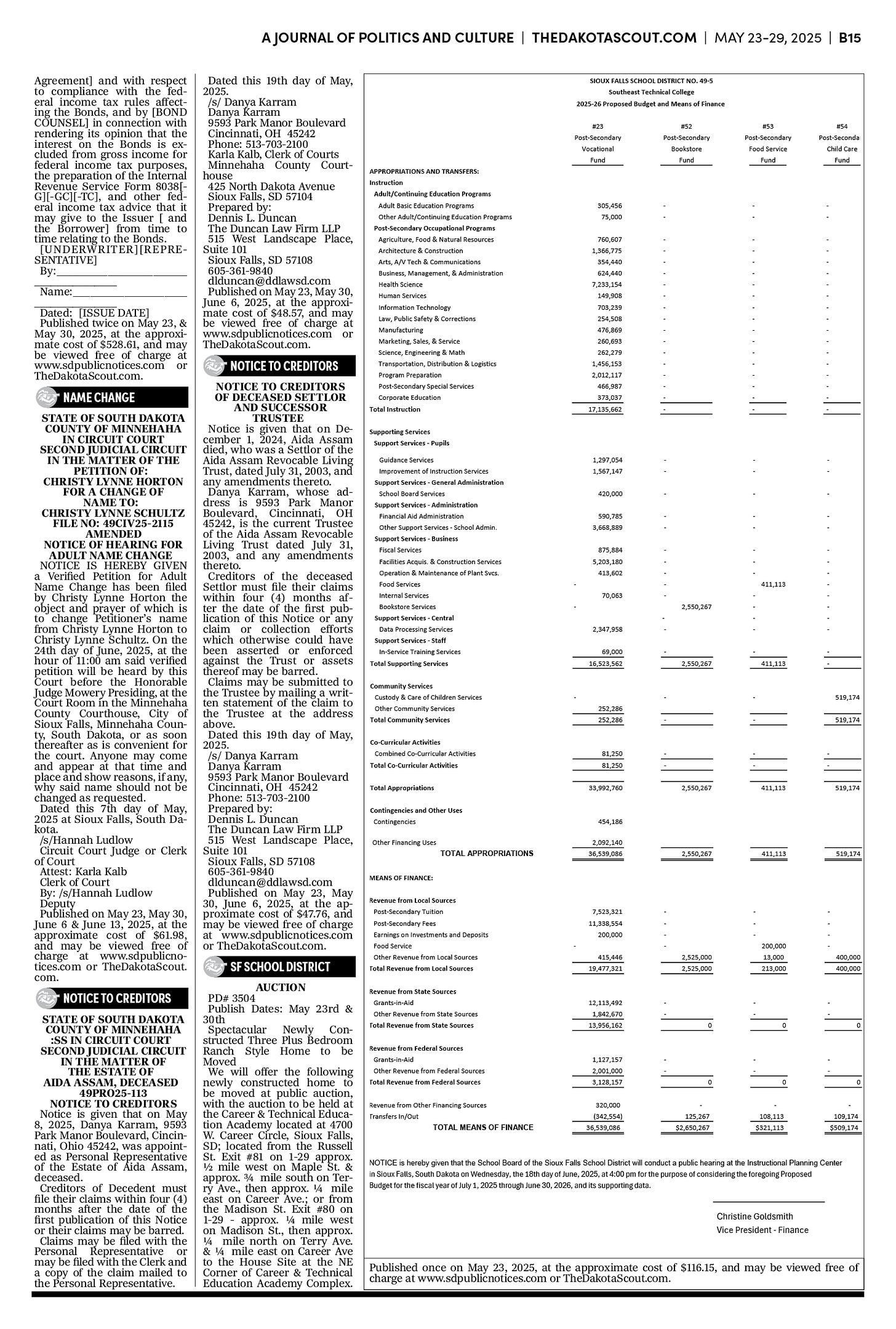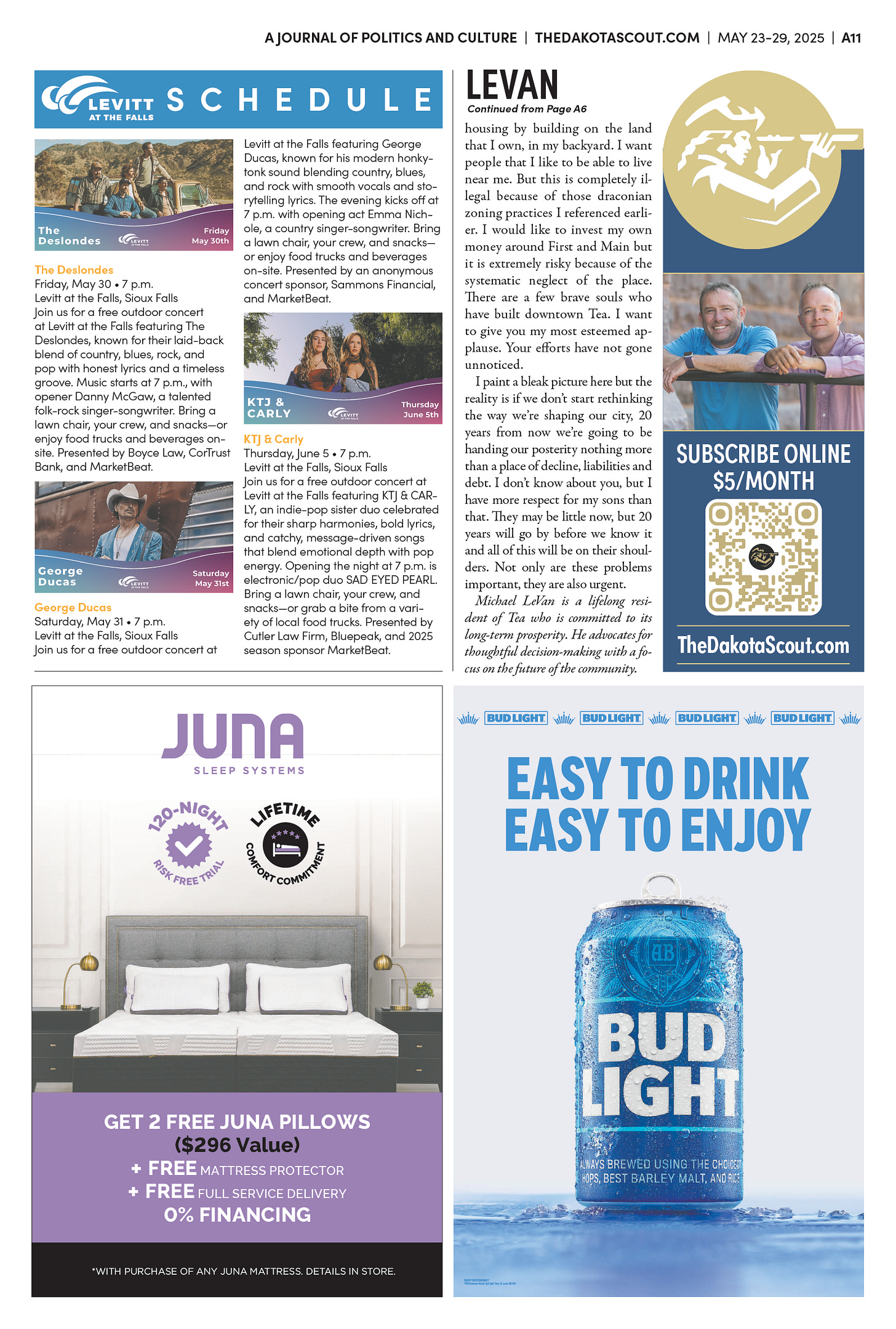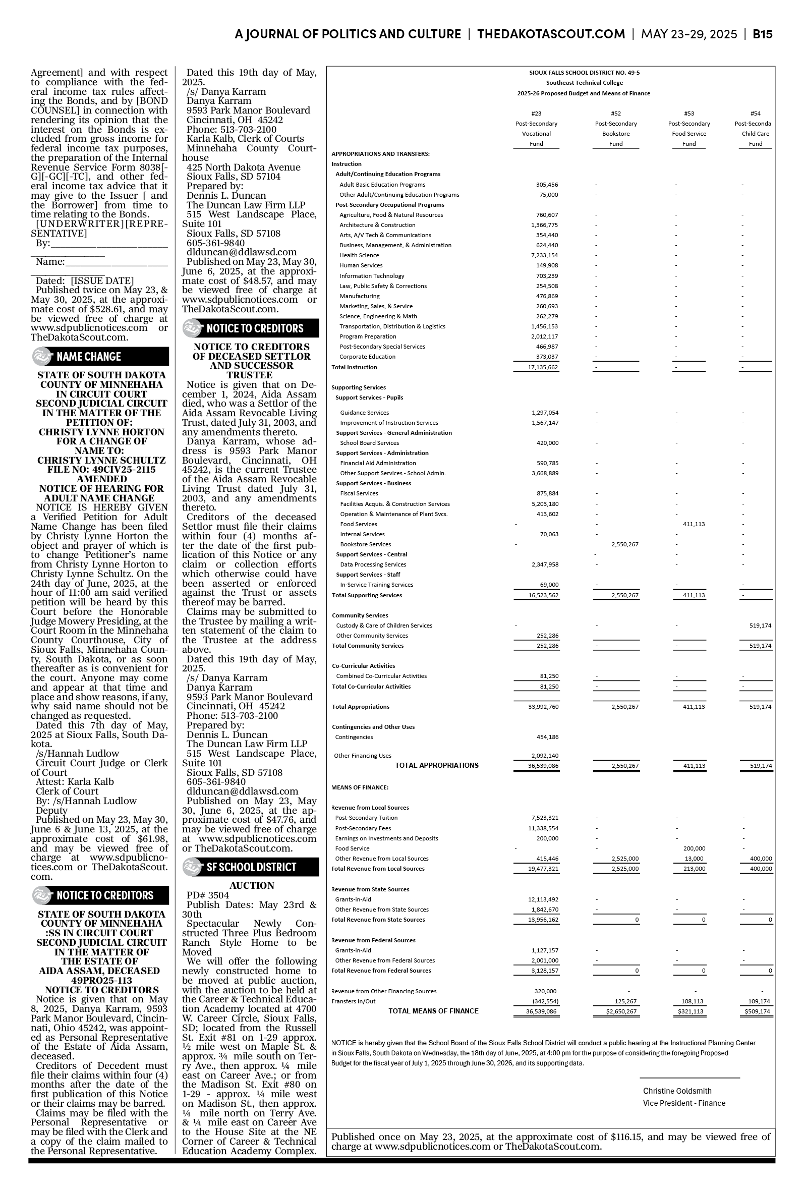 FREE TO READThe Dakota Scout E-edition Vol. 2 No. 39 | May 23-29, 2025The Dakota ScoutMay 26, 20252ShareThe Dakota Scout is reader-supported. To receive new posts and support our work, consider becoming a free or paid subscriber.SubscribeTo submit an obituary, email obits@thedakotascout.comSiouxFalls.BusinessThe Dakota Scout is reader-supported. To receive new posts and support our work, consider becoming a free or paid subscriber.SubscribeSiouxFallsLive.comLegals & Public Notices: May 23, 2025May 23Read full storyPreviousNext