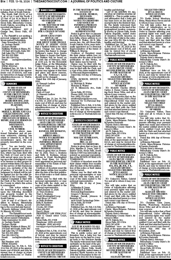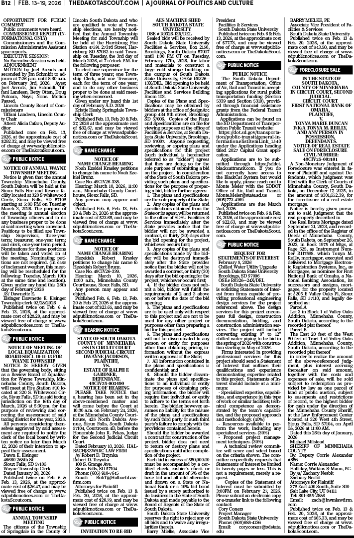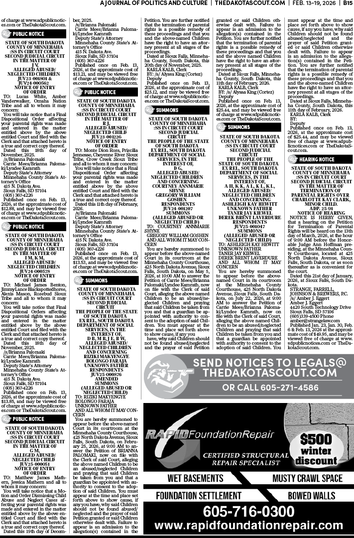To place a public notice in The Dakota Scout, email legals@thedakotascout.com