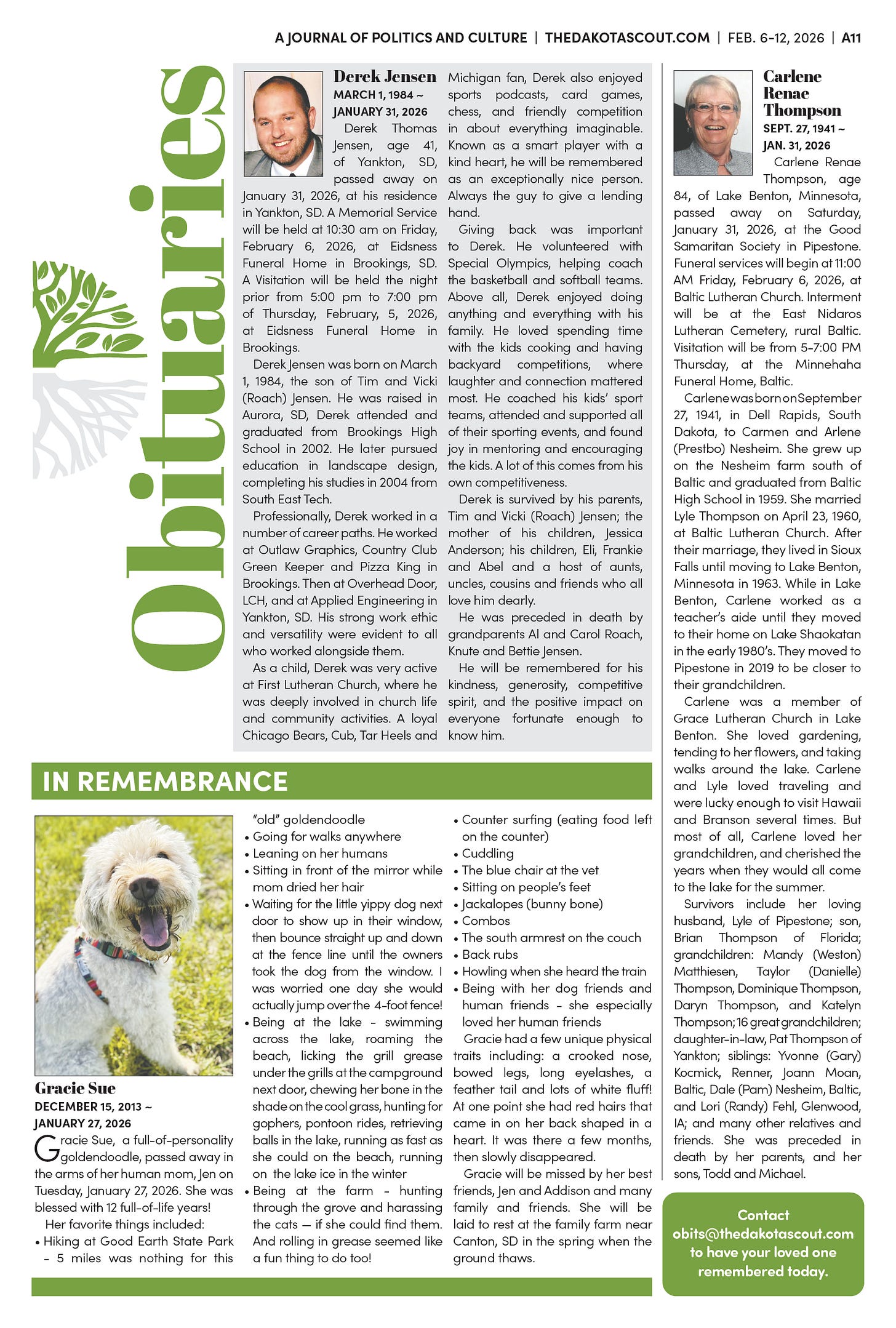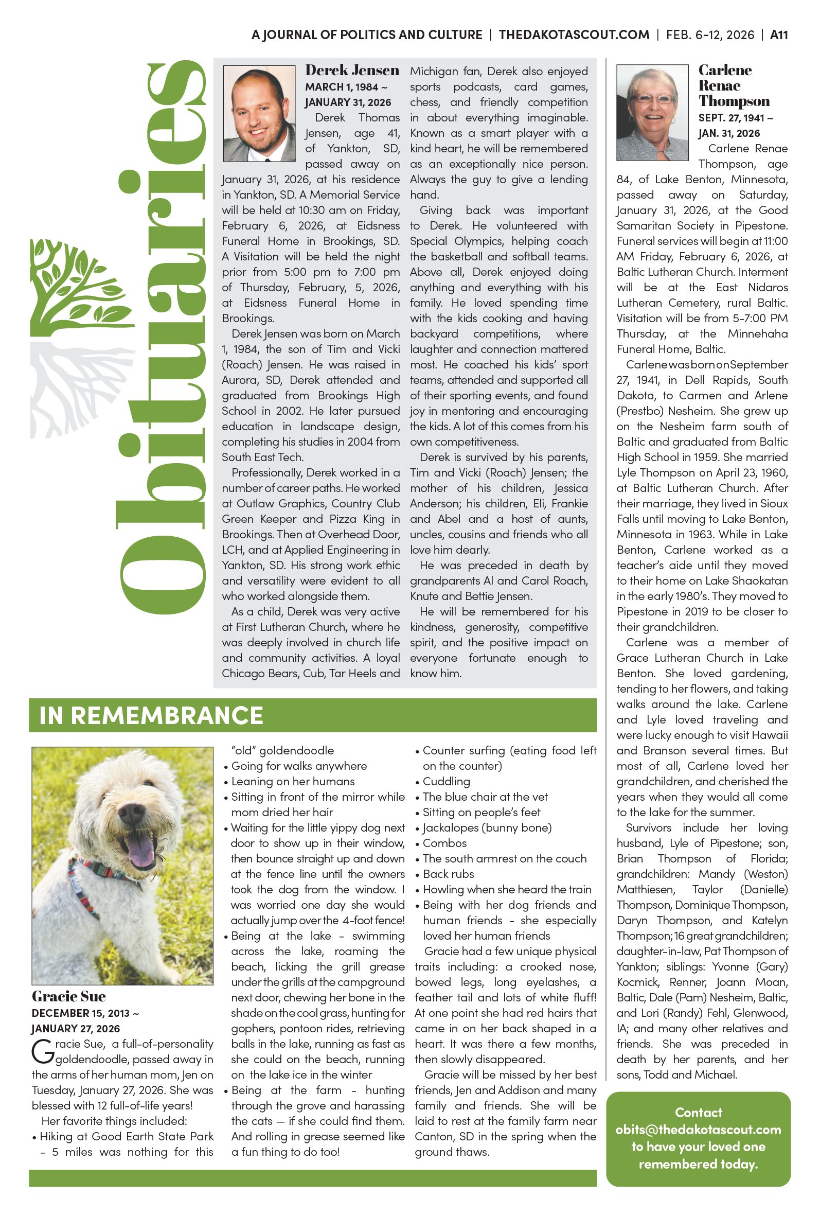 Send obituaries to obits@thedakotascout.com
