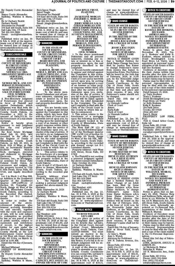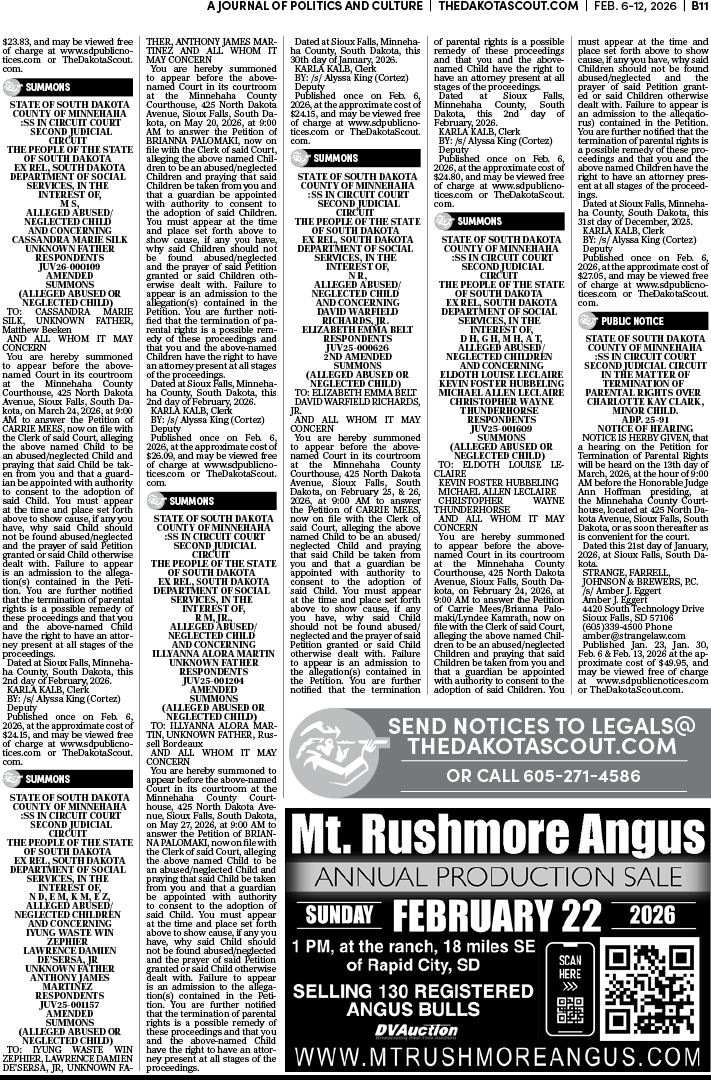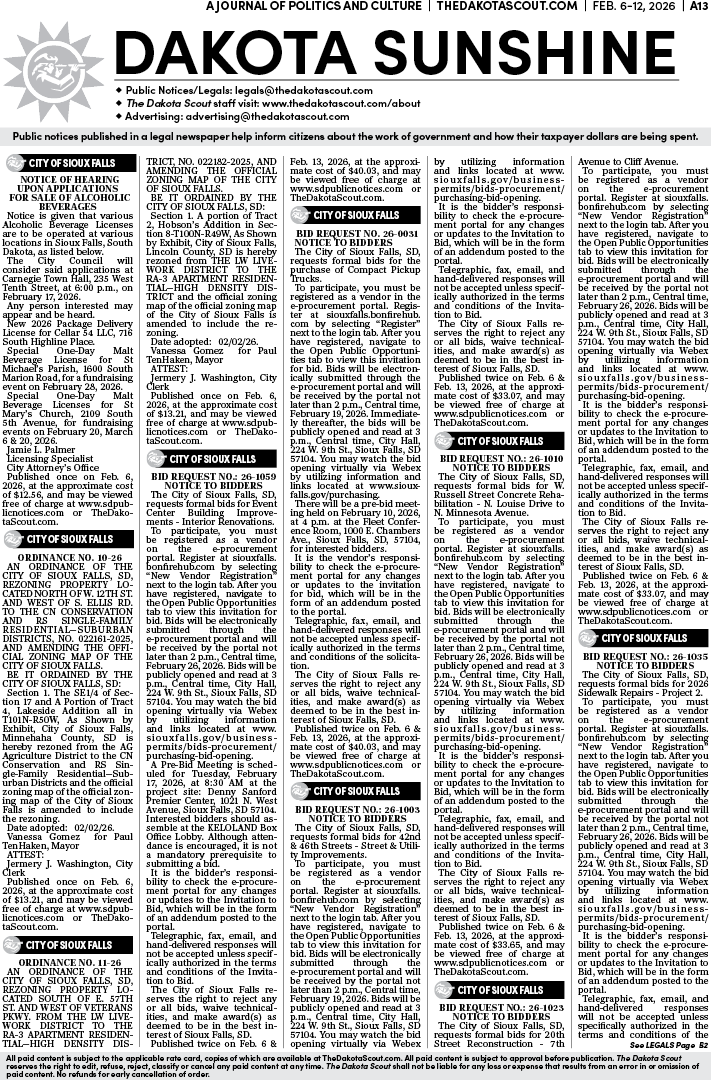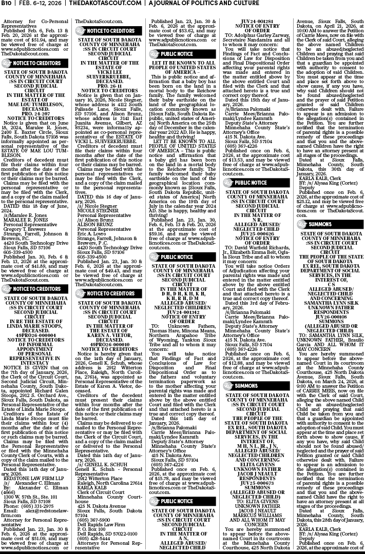 To place a public notice in The Dakota Scout, email legals@thedakotascout.com