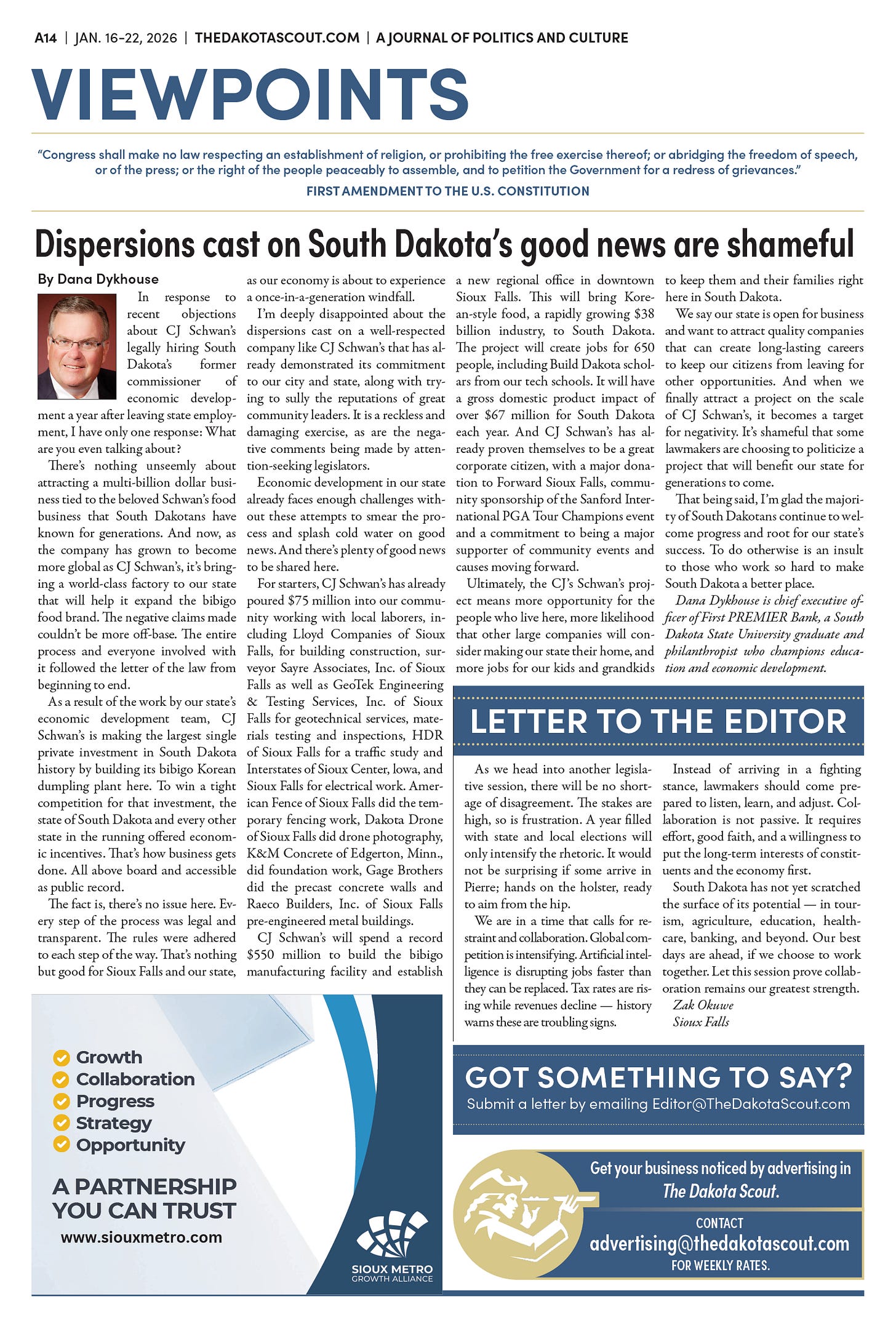 To submit a letter to the editor or a guest column to The Dakota Scout’s VIEWPOINTS section, email viewpoints@thedakotascout.com