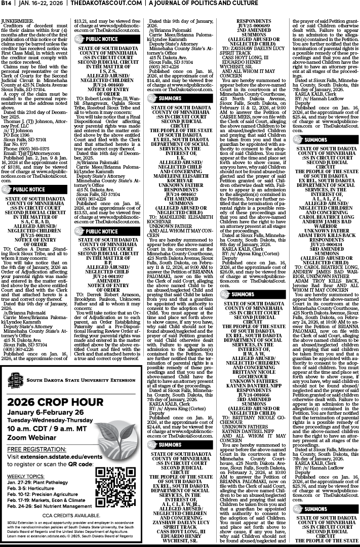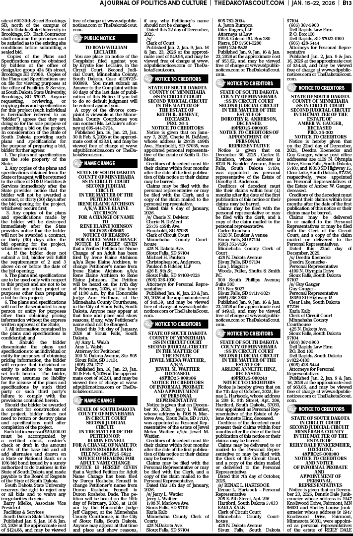 To place a public notice in The Dakota Scout, email legals@thedakotascout.com