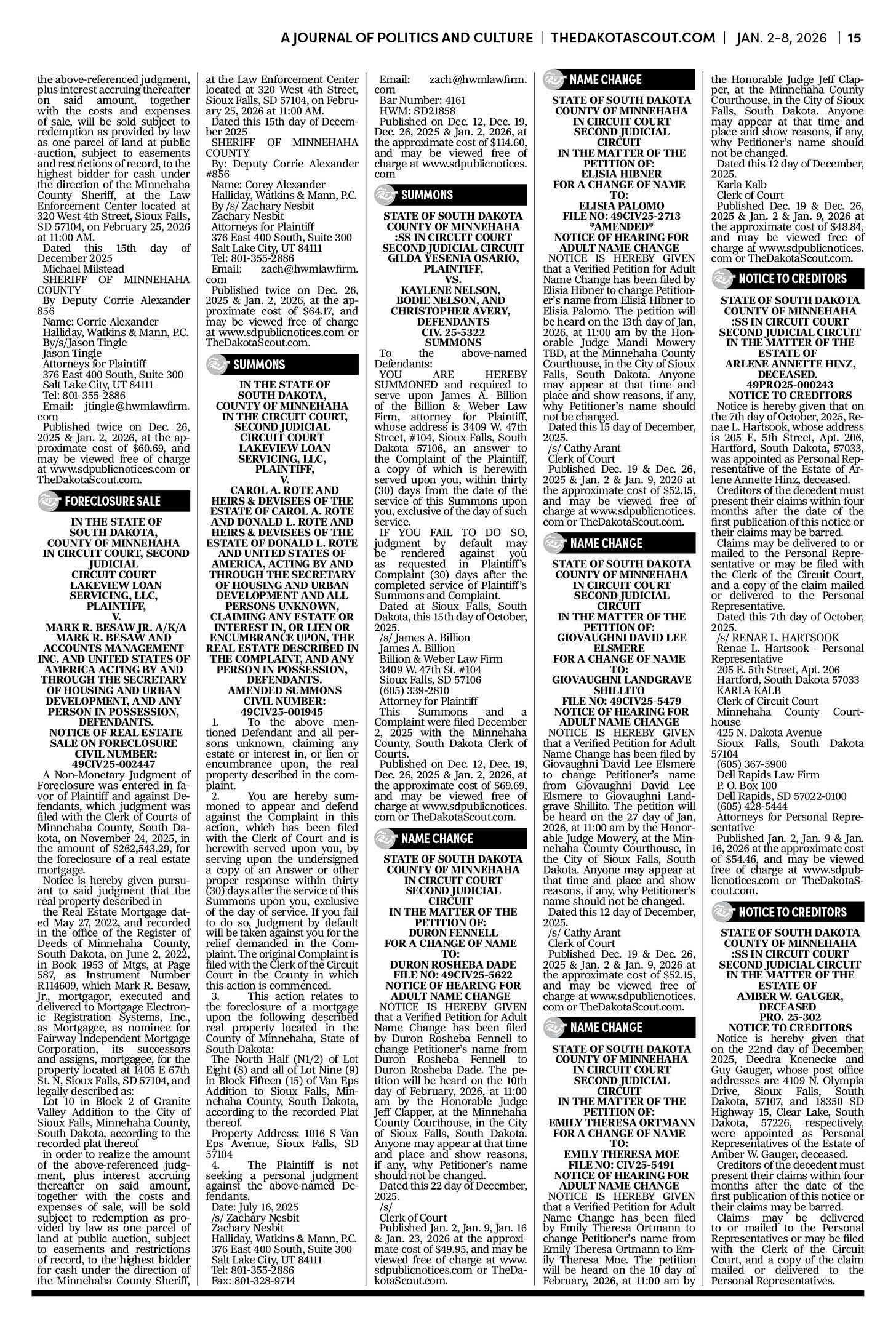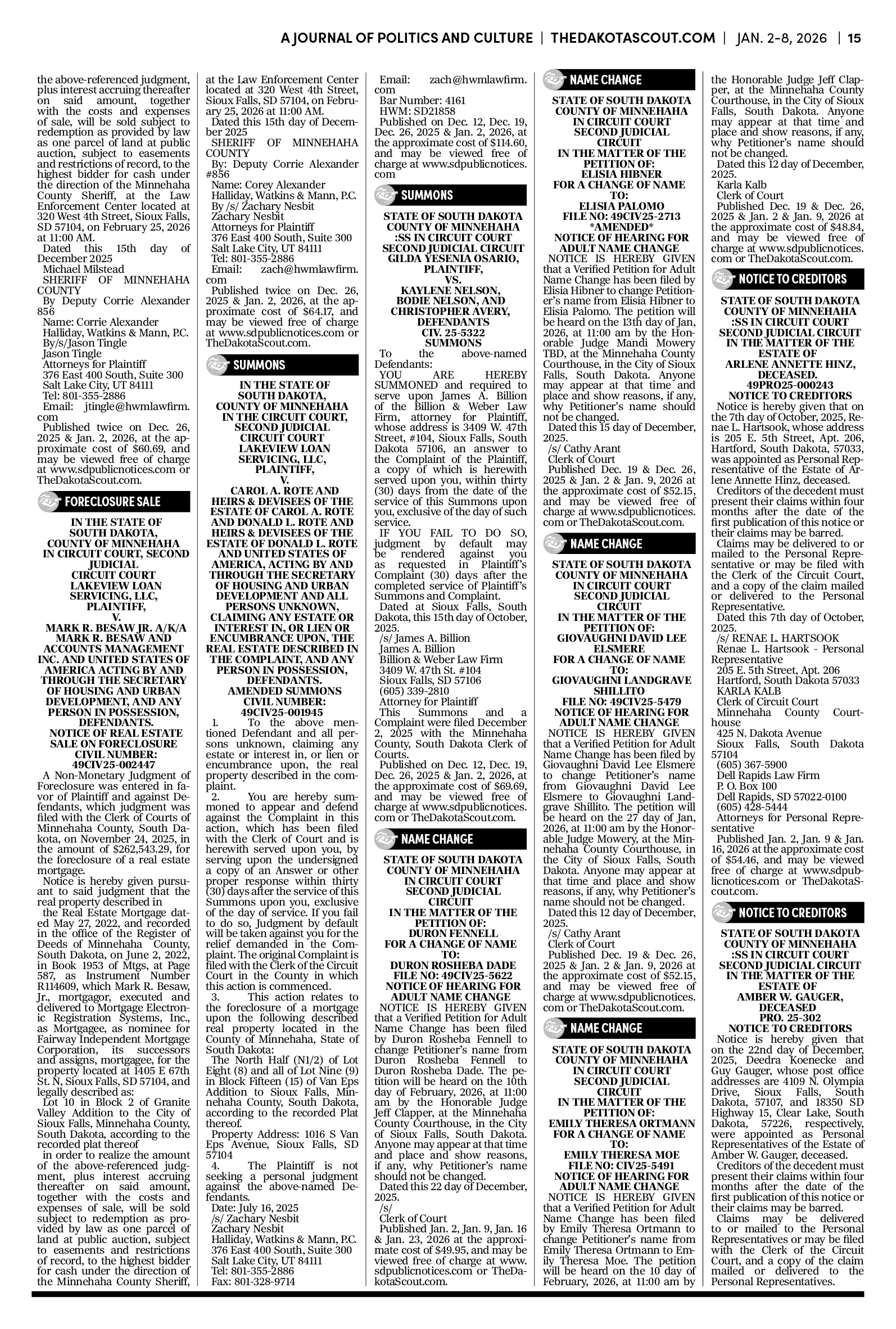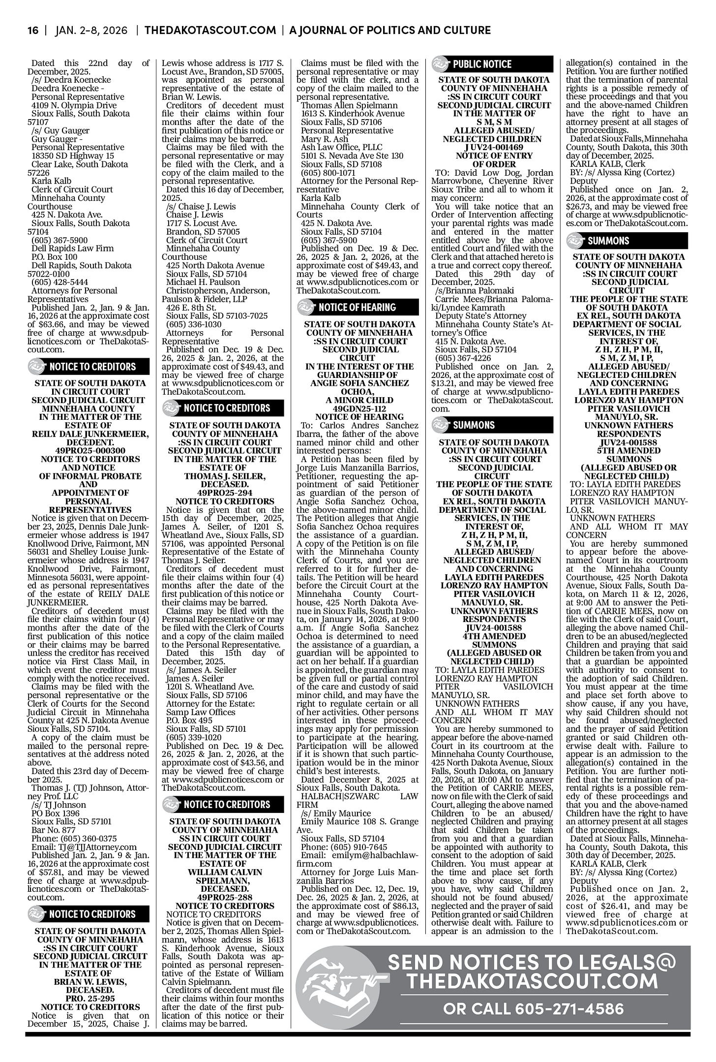 To publish an obituary in The Dakota Scout, email obits@thedakotascout.com