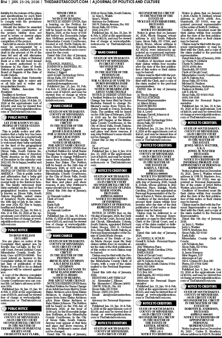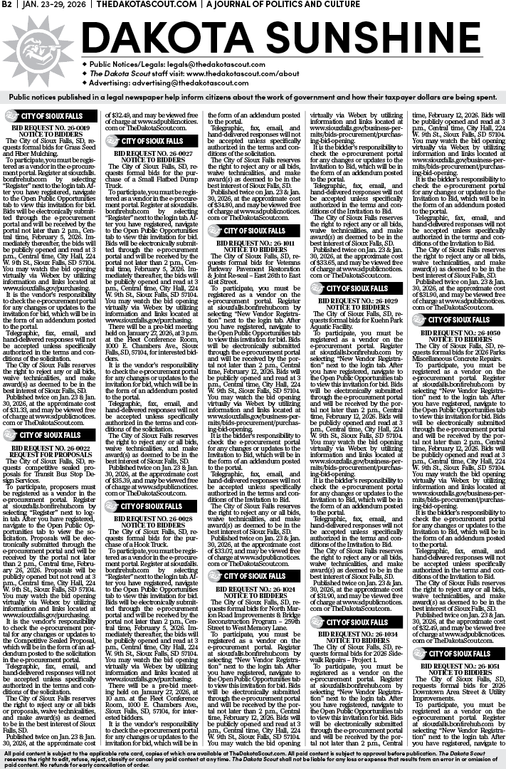 To place a public notice in The Dakota Scout, email legals@thedakotascout.com
