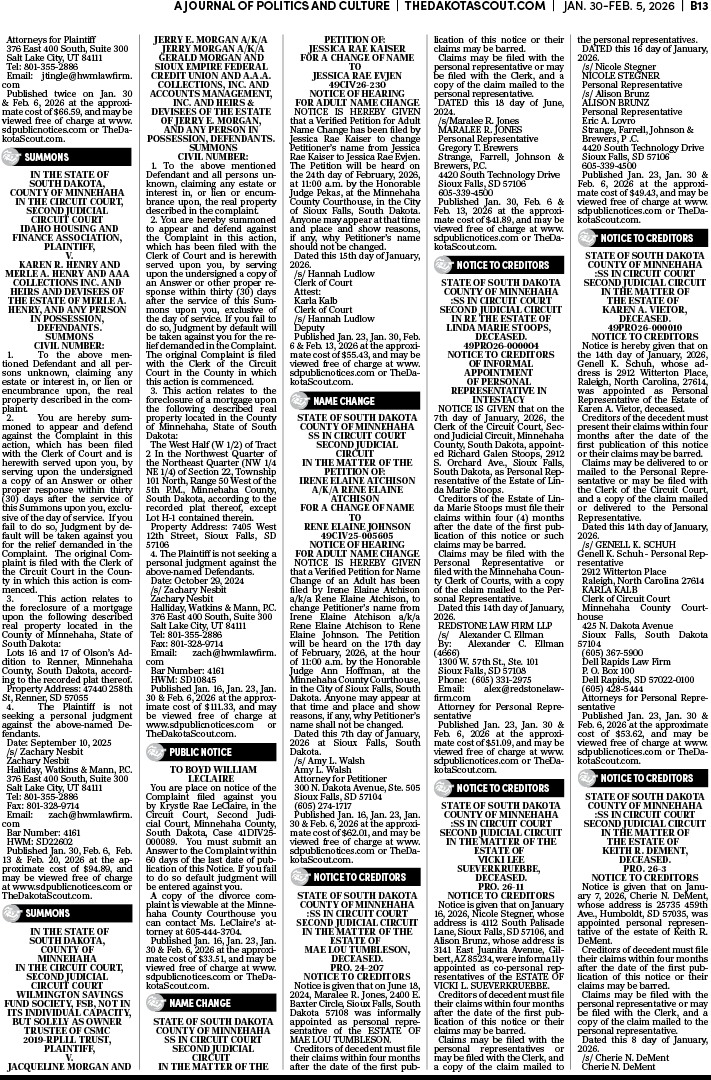 To place a public notice in The Dakota Scout, email legals@thedakotascout.com