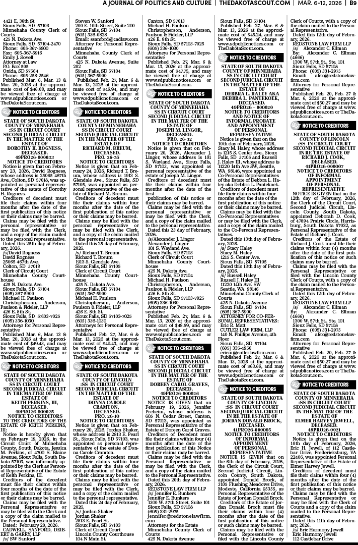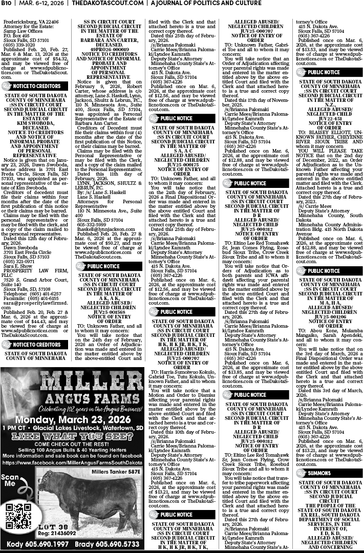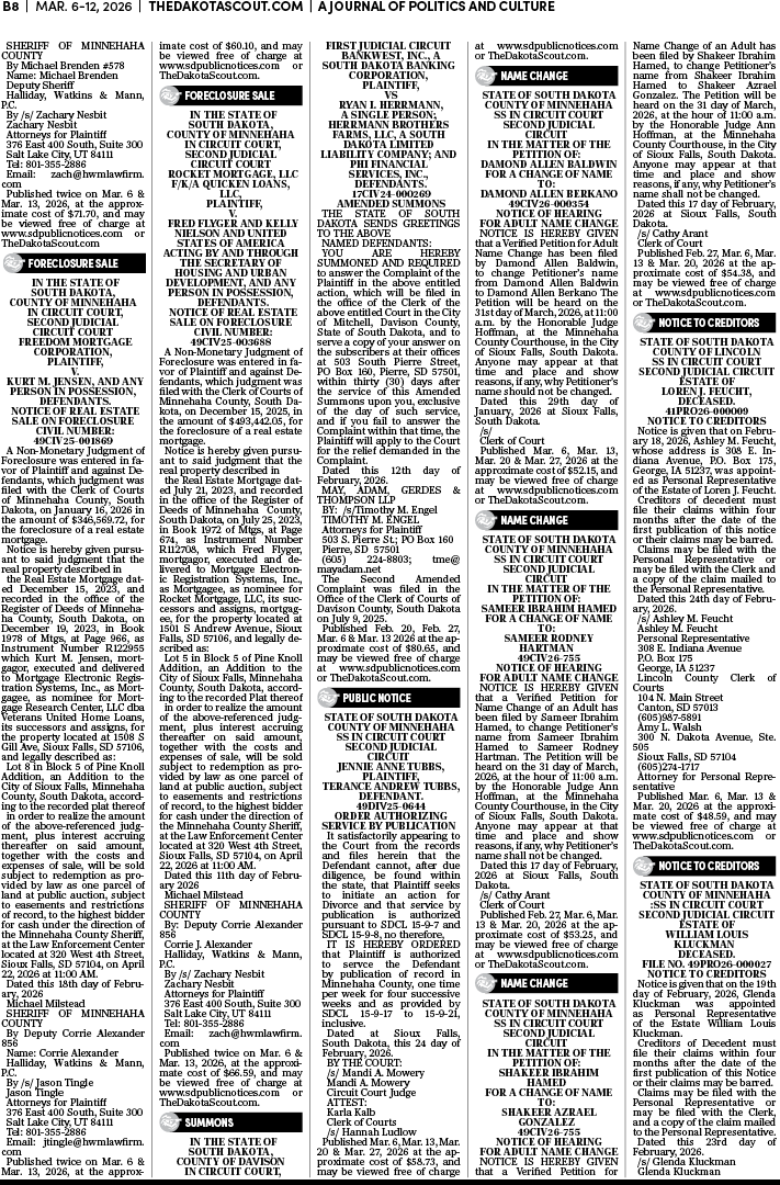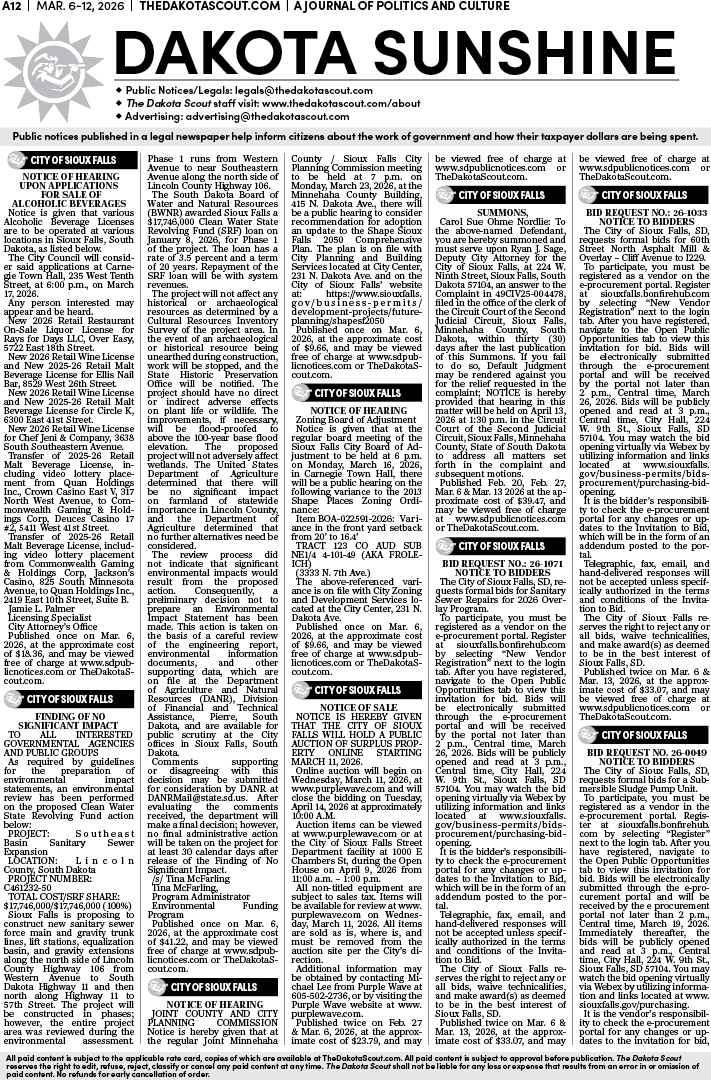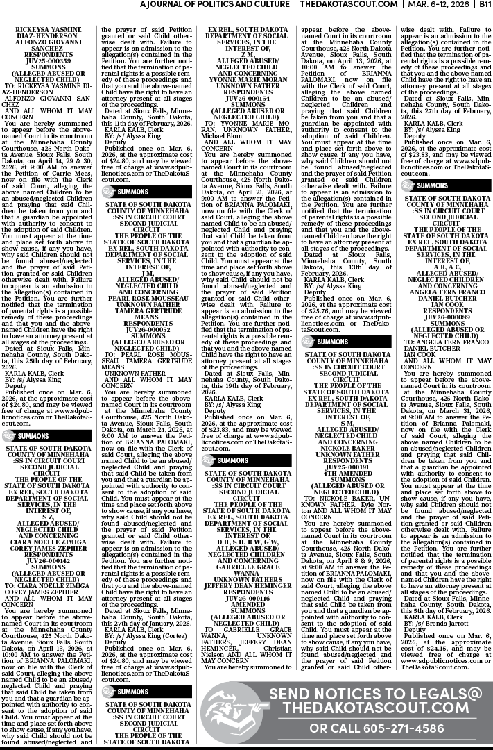 To place a public notice in The Dakota Scout, email legals@thedakotascout.com