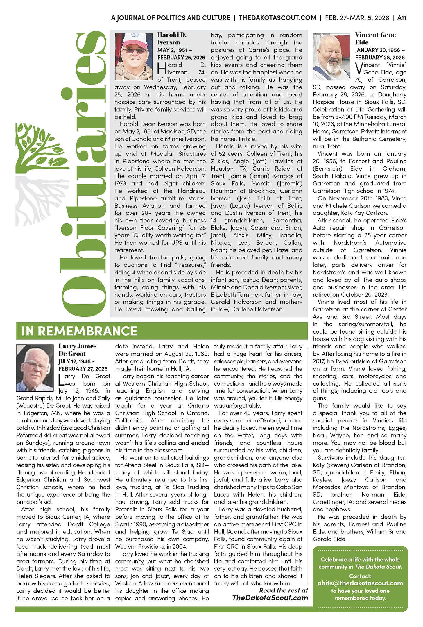 Send obituaries to obits@thedakotascout.com