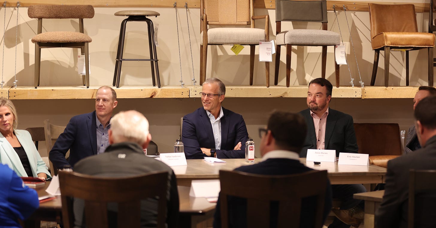 The state’s senior senator met with nearly two dozen business leaders from around the state at Montgomery’s, a furniture store in Sioux Falls.