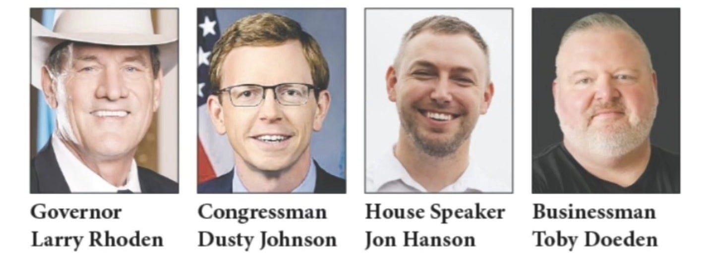 The 2026 GOP gubernatorial debate, organized and hosted by Sioux Falls Live and The Dakota Scout, will be held at the Belbas Theater inside the Washington Pavilion. The candidates are U.S. Rep. Dusty Johnson, Gov. Larry Rhoden, House Speaker Jon Hansen and businessman Toby Doeden.