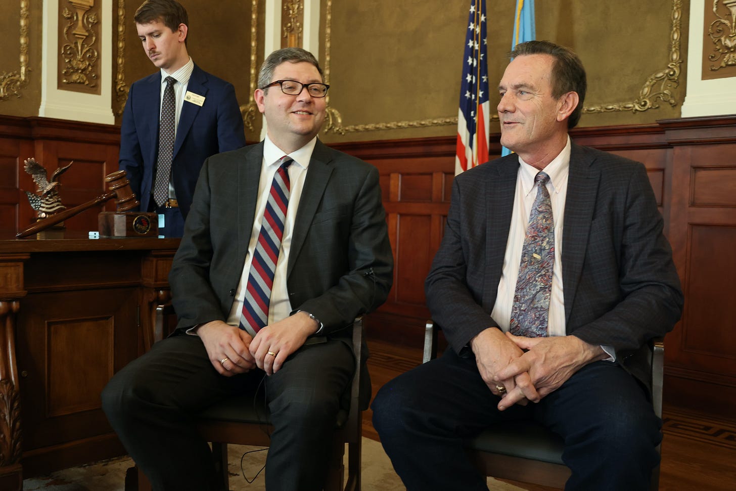 PIERRE — In their first joint interview since being sworn into their respective offices, Gov. Larry Rhoden and Lt. Gov. Tony Venhuizen sat down with The Dakota Scout’s Austin Goss and Joe Sneve to discuss how they navigated the succession of power after the departure of former Gov. Kristi Noem, and their visions for the remainder of South Dakota’s 100th Legislative Session. Among topics covered were a new men’s prison planned in Lincoln County, a push to create an education savings account (ESA) program, and Rhoden’s hopes of bringing fireworks back to Mount Rushmore’s annual Independence Day celebration.