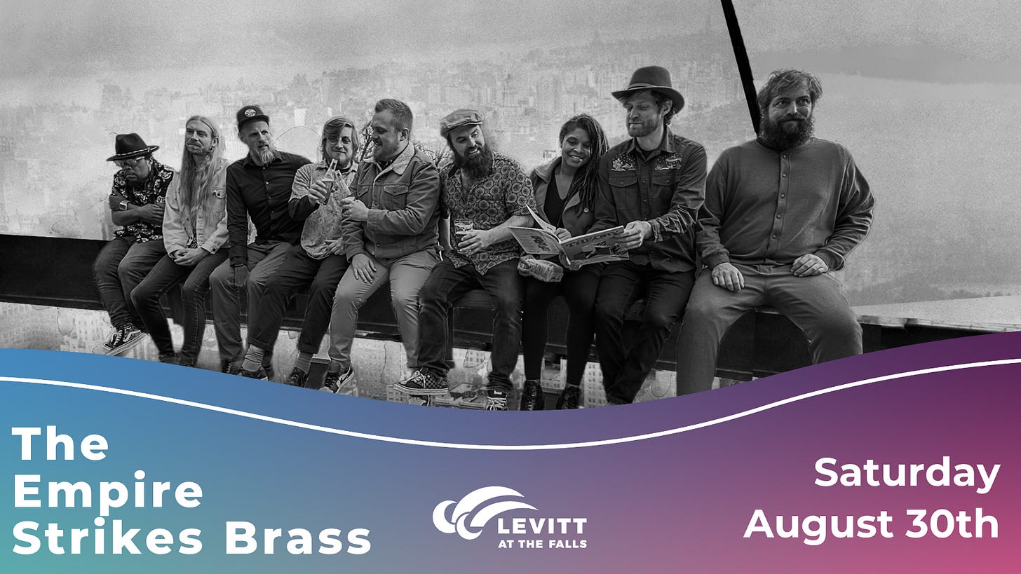 Join us for a free outdoor concert at Levitt at the Falls featuring Empire Strikes Brass, a love of New Orleans-inspired funk tunes infused with elements of rock and jam. Bring a lawn chair, your people, and some snacks—or enjoy food trucks on site. Presented by First PREMIER Bank, and 2025 Season Presenting Sponsor Marketbeat.