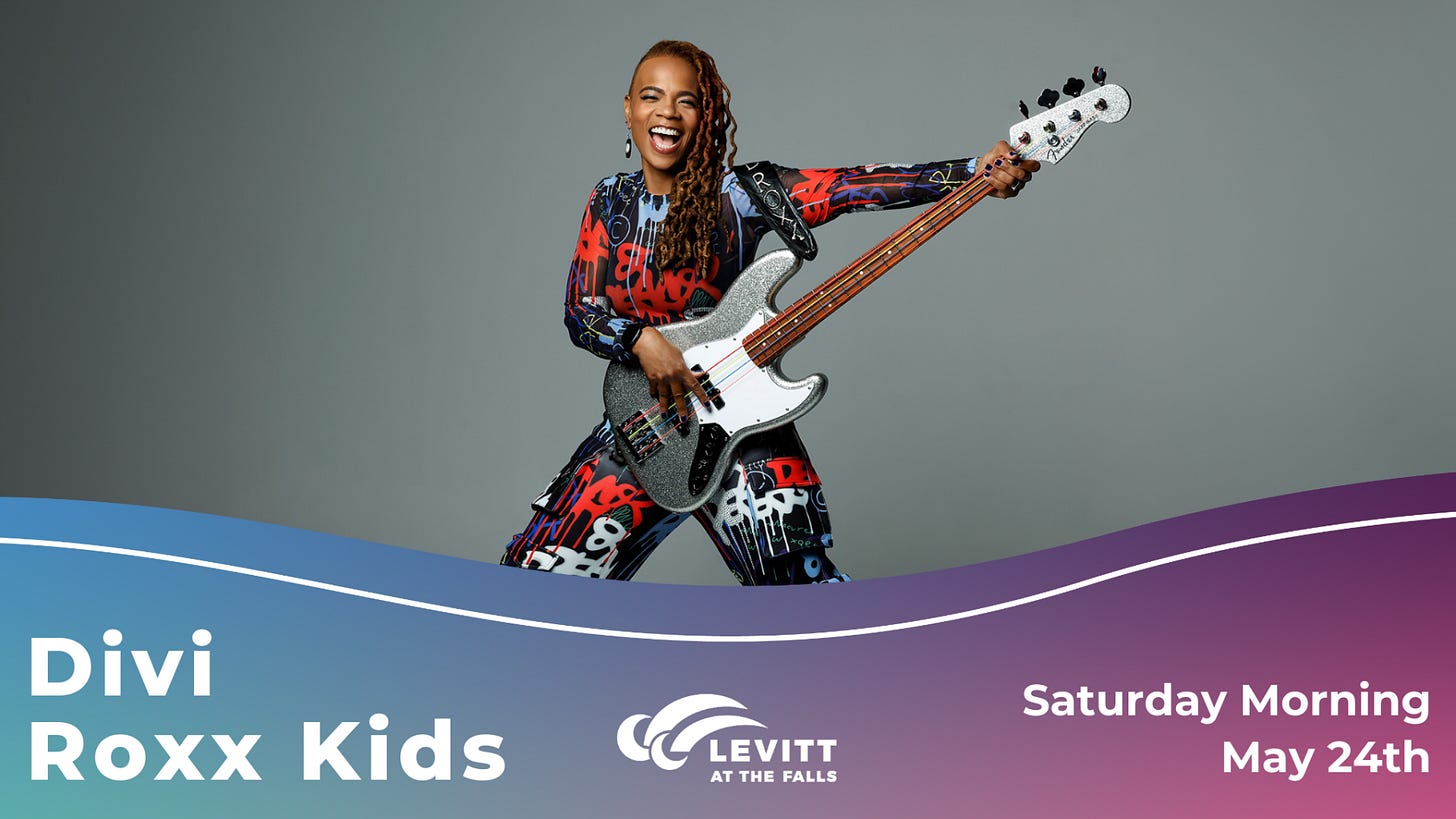 Join us for a free family-friendly concert at Levitt at the Falls featuring Divi Roxx Kids—an upbeat, interactive show full of music, movement, and messages of self-love and positivity. Music starts at 10:30 a.m. with food trucks Corndog Co. and Simply Put on-site. Bring a lawn chair, your crew, and snacks for a joyful morning downtown. Sponsored by The ‘hood Magazine, Therapy Dogs International, and MarketBeat.