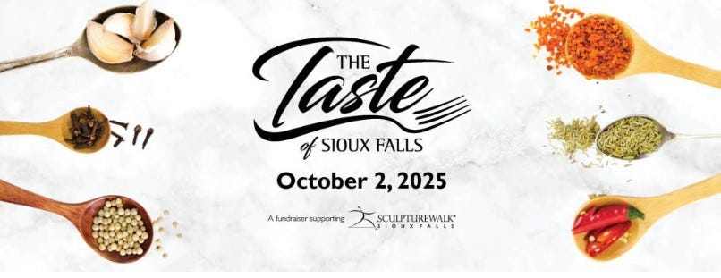 Experience an evening of exceptional cuisine and meaningful community support as more than a dozen of Sioux Falls’ top restaurants come together to offer a curated tasting event unlike any other. Guests will enjoy a wide variety of expertly crafted dishes while contributing to a cause that brings public art to the heart of the city. In addition to the culinary experience, raffle tickets offer the chance to win exclusive prize packages valued at up to $2,500, featuring art, fine dining, luxury gifts and unique local experiences. Proceeds from the evening help support ongoing efforts to make art accessible and engaging for all.