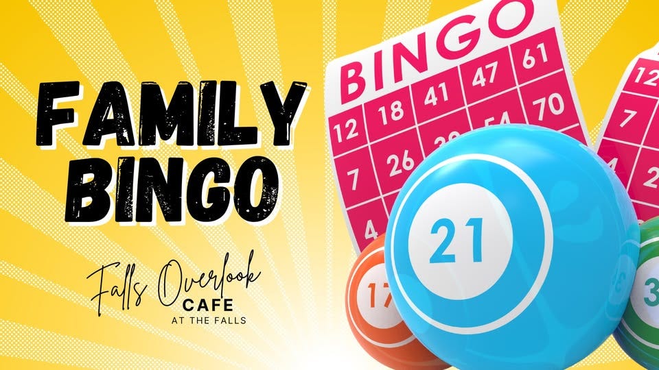 Gather the crew and head to Falls Overlook Cafe for a fun-filled Family Bingo night overlooking the Falls. This free event is suitable for all ages, with multiple rounds of bingo, prizes, and plenty of laughs. Seating is limited, so RSVP is recommended. Food options include a build-your-own taco bar, refreshing drinks, and a loaded ice cream bar will be available for purchase throughout the night.