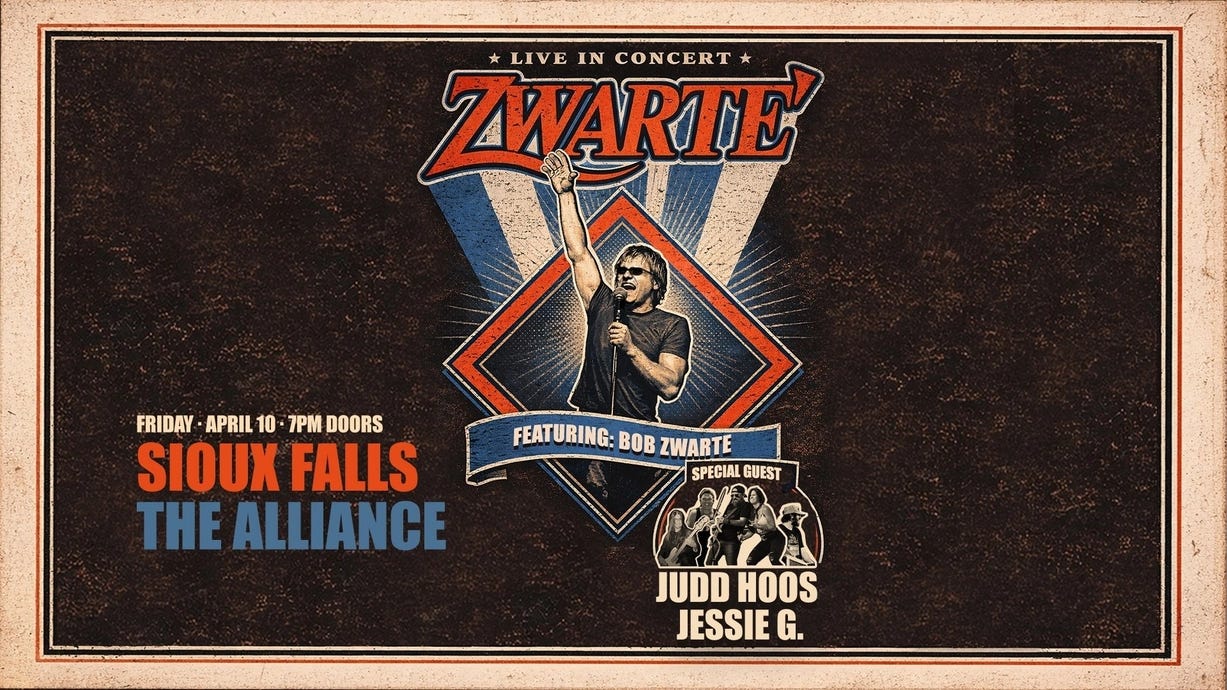 Once considered among the most popular Midwest club bands in the ’80s and ’90s, South Dakota-based Zwarte is coming back to celebrate its rock hits while paying homage to the loss of one of its founding members, Randall Zwarte. Special musical guests include Judd Hoos and Jessie G.