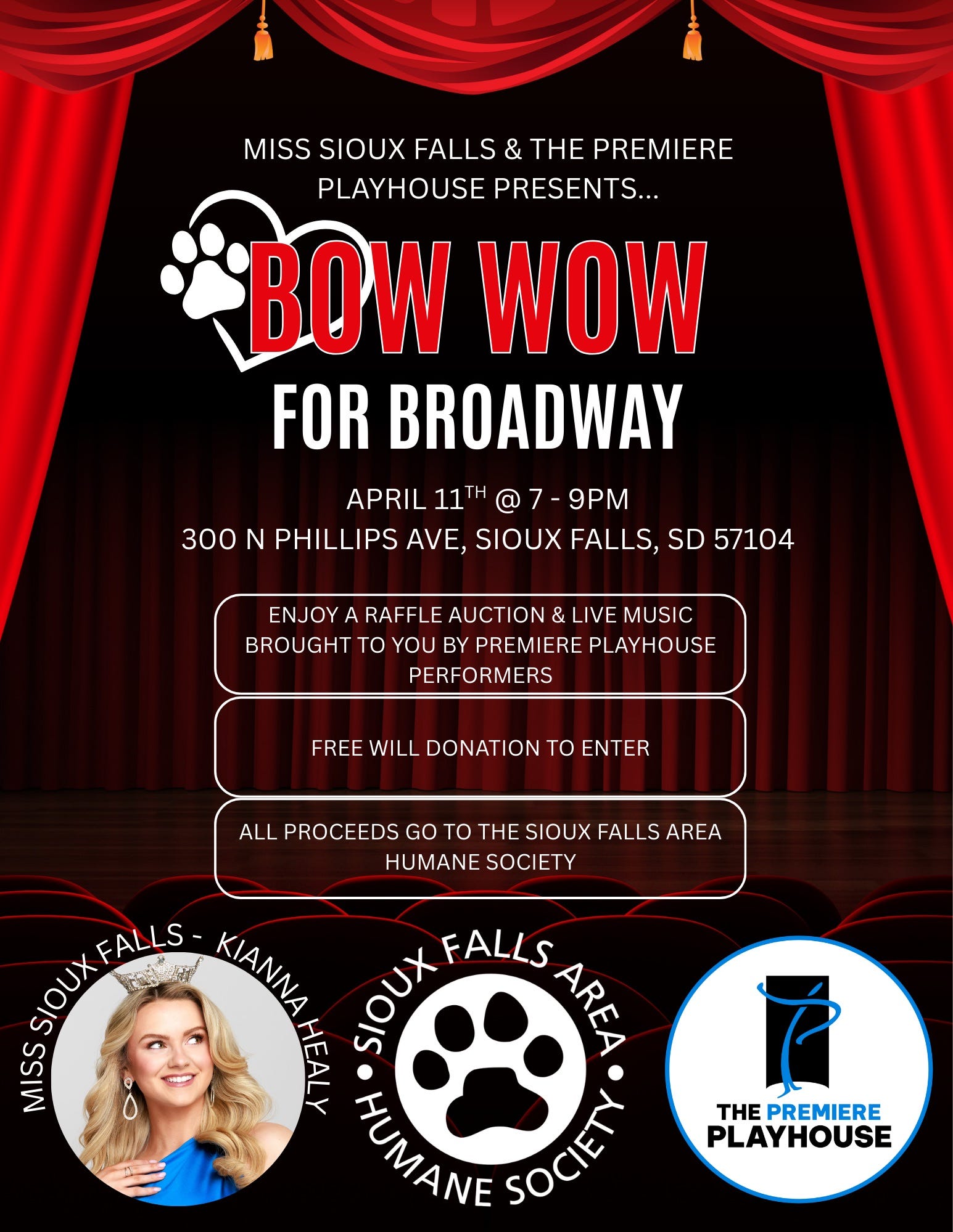 The dogs will have their day at the playhouse this Saturday. Join Miss Sioux Falls and the Premiere Playhouse performers for a night of musical hits, local talent, and raffle prizes. Free will donations are encouraged for admission. All proceeds go to supporting the Sioux Falls Area Humane Society.