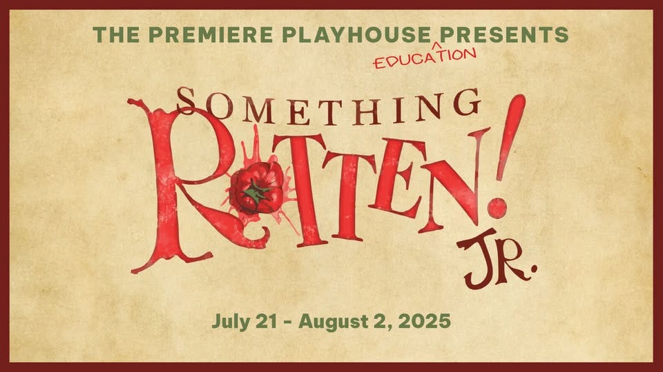 Something Rotten Jr. brings a hilarious, family-friendly adaptation of the Broadway hit to The Premiere Playhouse stage. The story follows two brothers attempting to create the world’s first musical during the Renaissance. Audiences of all ages will enjoy the energetic performances, catchy songs, and theatrical humor.
