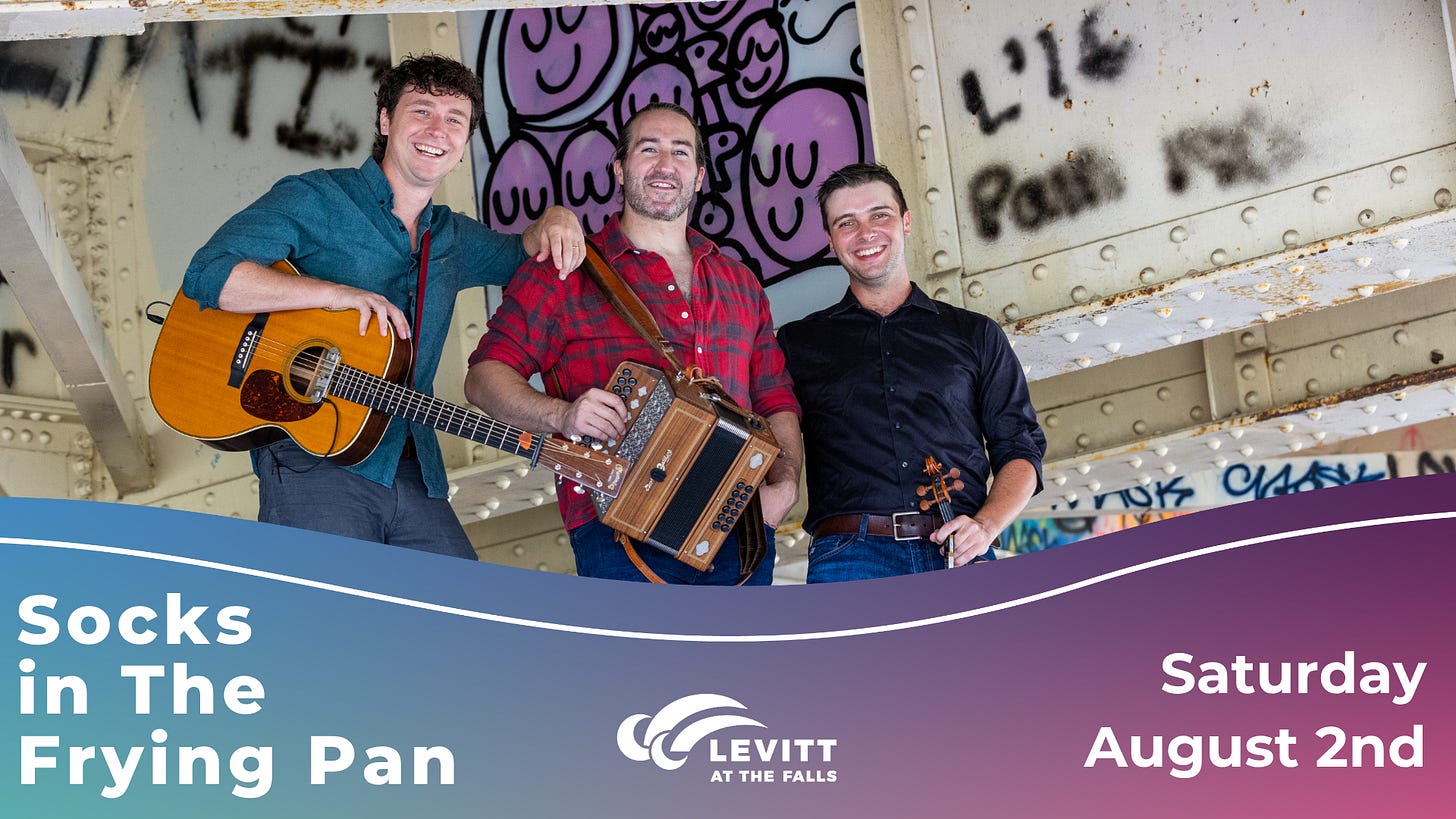 Join us for a free outdoor concert at Levitt at the Falls featuring Socks in the Frying Pan, a multi-award-winning trio from Ennis, County Clare, Ireland. Blending virtuosic musicianship, rich harmonies, and a splash of quick wit, they bring electrifying energy and charm to the Irish traditional music scene. Bring a lawn chair, your people, and some snacks—or enjoy food trucks on site. Presented by Breathe Bravely, Sioux Falls Zoo and Aquarium, and 2025 Season Presenting Sponsor Marketbeat.